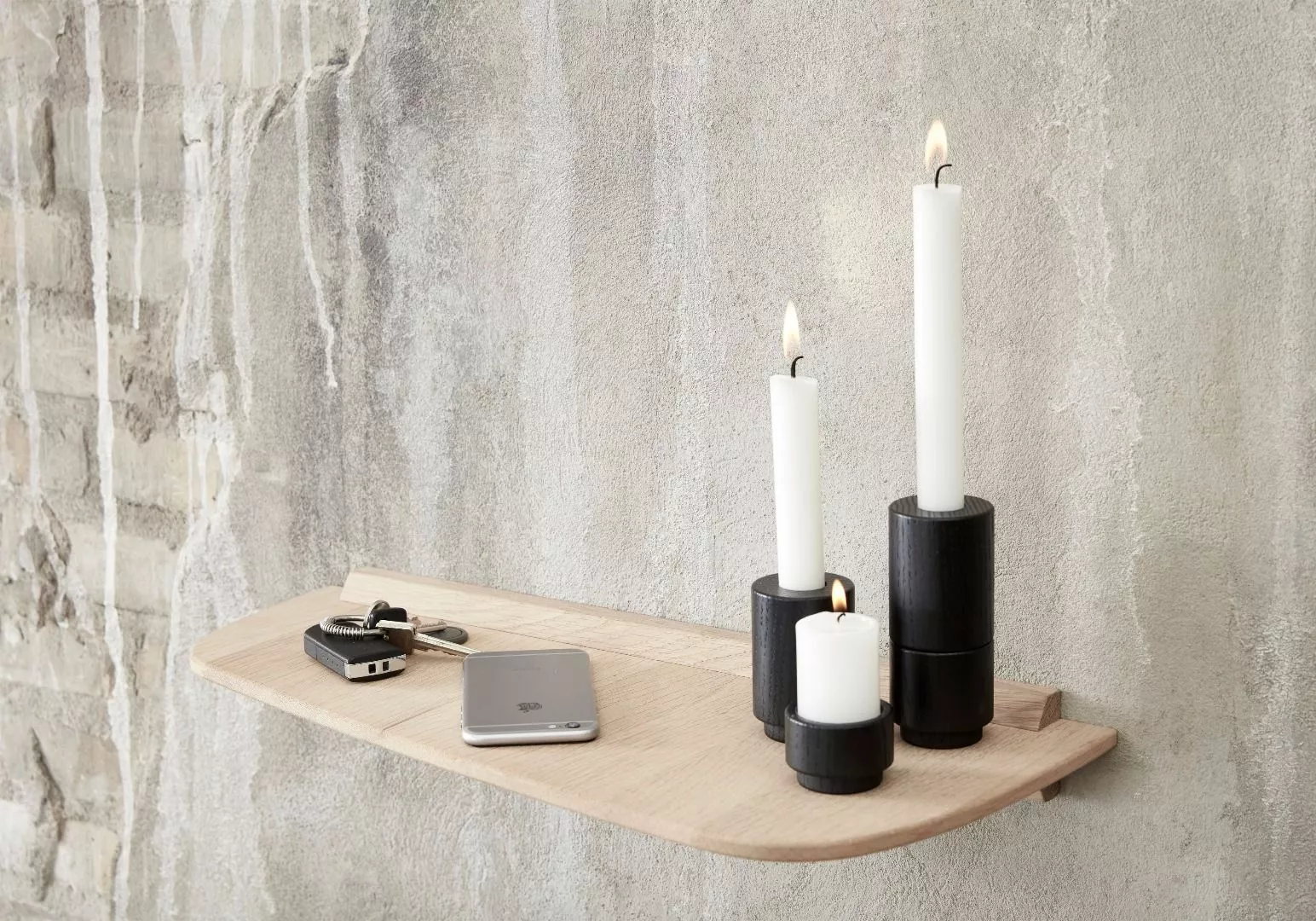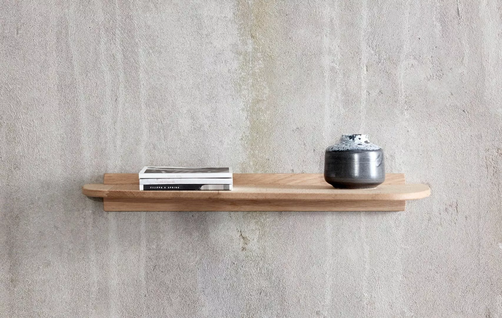 Attraktiv, dekorativ hylla i massiv ek. Hyllan finns i tre olika storlekar och kan användas i en mängd olika sammanhang.