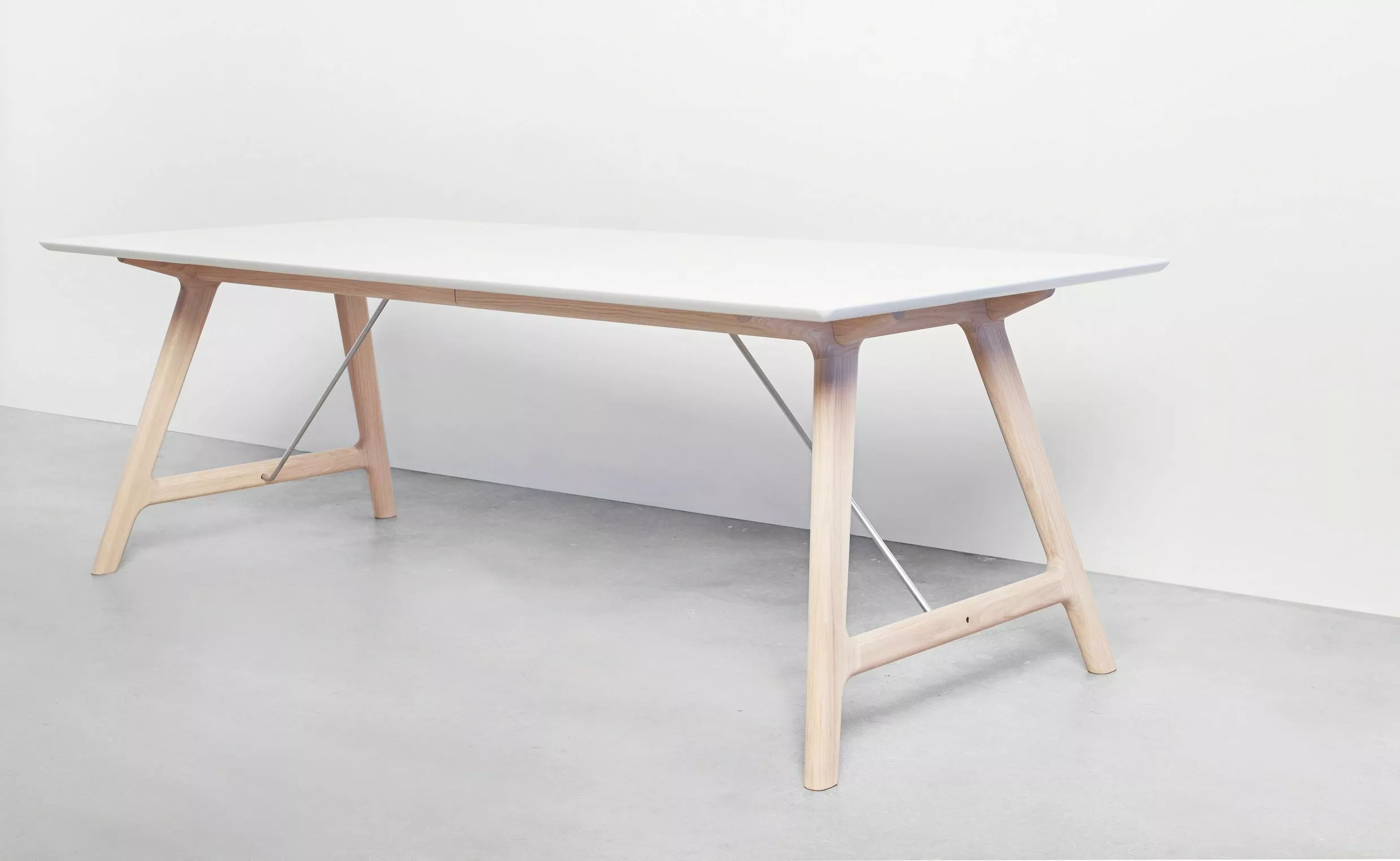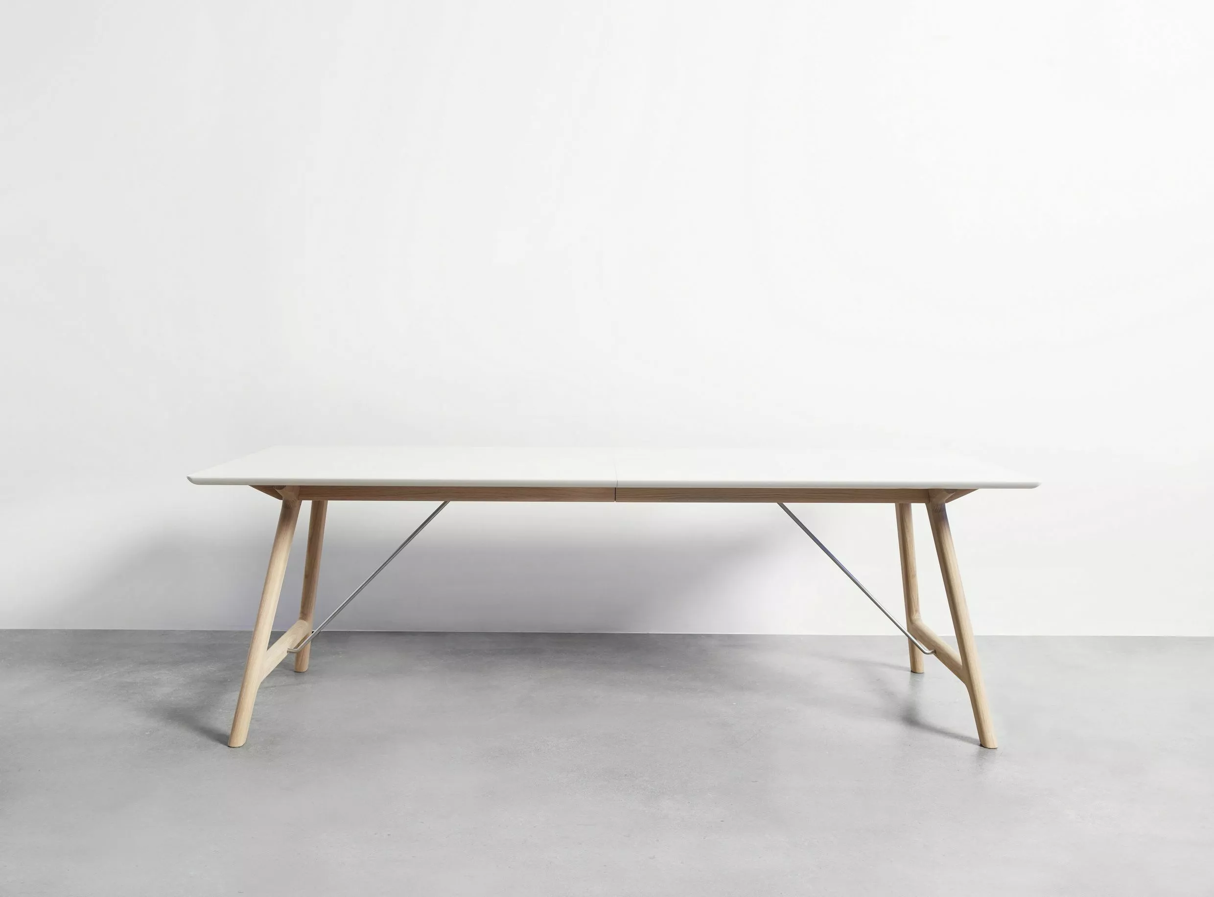 Utdragbart bord med vitt genomfärgat laminat och vitmålad kant