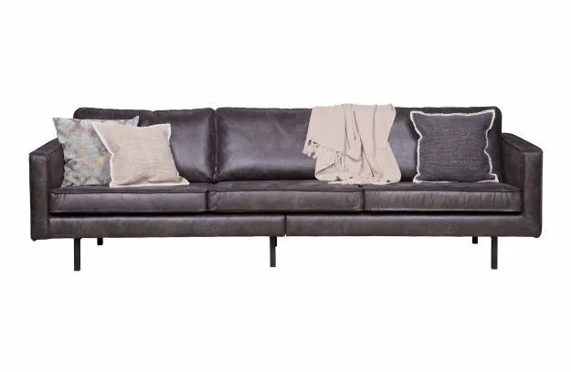Tuff svart skinnsoffa i Rodeo-serien. En modern soffa som blivit en hit bland kunderna.