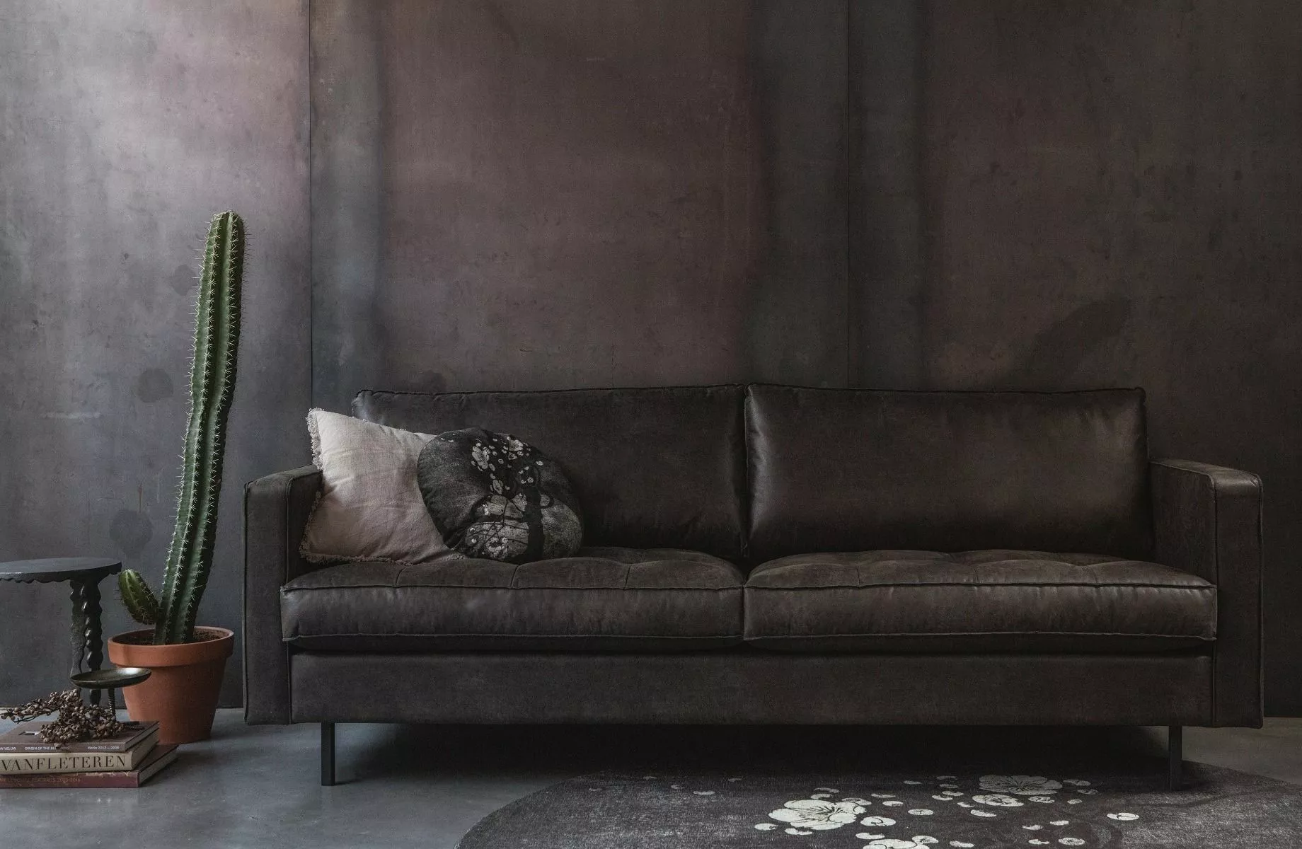 Denna Classic 2,5-sits variant har sydda sittdynor som ger soffan en klassisk känsla. Soffan har gott om sittplatser och har ett tufft tyg av återvunnet läder. Den smala ramen och de lösa kuddarna gör att soffan ser subtil ut i vardagsrummet. De lösa kuddarna är inte vändbara. De 16 cm höga benen är gjorda av metall med svart finish. Sitthöjden är 47 cm, sittdjupet 58 cm, sittbredden 206 cm, ryggstödet 49 cm högt. Bredden på armstöden är 12 cm och höjden på armstöden är 70 cm.