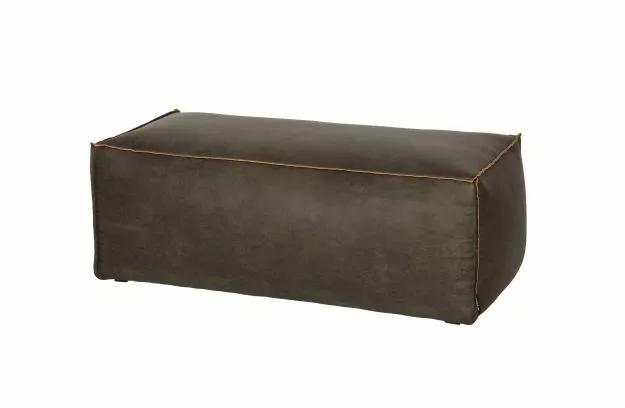 Puffen har ett solid Eco-läder som består av: 70% läder och 30% polyester. Ytan består av återvunnet äkta läder som garanterar ett naturligt och unikt utseende. Lädret är skyddat av ett polyesterskikt som förhindrar ojämnheter och gör det till ett solidt och slitstarkt material som ger tyget ett rustikt utseende. Denna komposition hjälper soffan att kräva minimalt underhåll och får lädret att bli mattare och mjukare. Polyestertopplack fungerar som en impregnering. Spill och smuts avlägsnas enkelt med en fuktig trasa och eventuellt lite mild tvål.