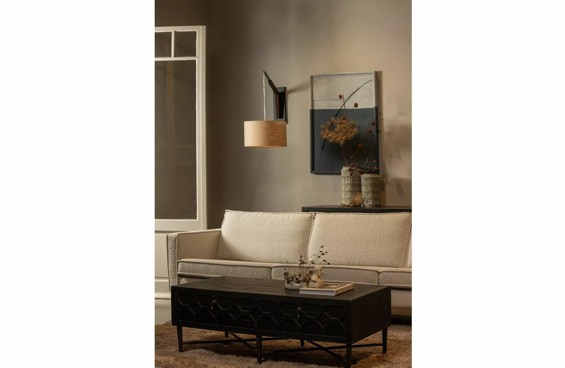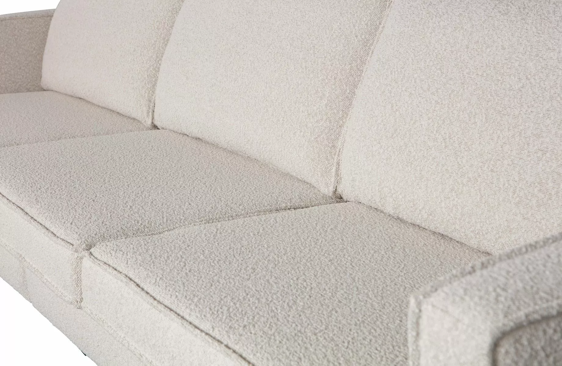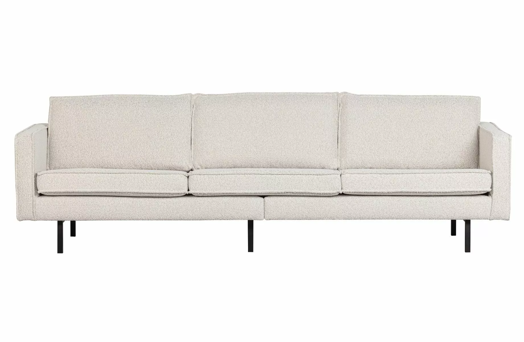 Rodeo-sofaen er laget av en kombinasjon av heltre, sponplater, polyuretanskum med en tetthet på 25 kg/m3 og sikksakkfjærer. Setet inneholder et polyuretanskum med en densitet på 30 kg/m3 (T3037). Ryggstøtten består av en kombinasjon av 70 % kuttet skum og 30 % silikon. Denne Rodeo er trukket i myk bouclé. Materialet til Colmar bouclé-stoffet svarer til den siste trenden: myke materialer. Stoffet er mykt og har en elegant tekstur som umiddelbart gir varme inn i hjemmet ditt. Vårt Colmar bouclé-stoff har en Martindale-rating på 100 000, noe som betyr at det er egnet for intensiv bruk. Den tette vevingen sikrer stoffets styrke, noe som gjør at boucléen ikke slites ut eller rives lett. Hver farge har også høy fargeekthet, men det anbefales å unngå direkte sollys for å unngå fargeskift.