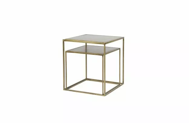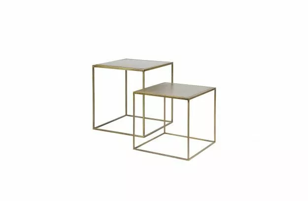 Uppsättningen med 2 – Metalliska sidobord i BePureHome-kollektionen är en riktig blickfång i ditt interiör. De två borden är gjorda av metall. Bordsskivorna är färdiga i färgen antik mässing. Storleken på det stora bordet är 45x40x40 cm och det lilla bordet är 35x36x36 cm. På grund av bordens olika storlekar kan de enkelt sättas ihop och bilda en vacker kombination.
