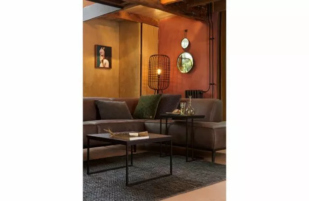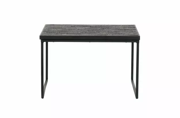 Det robusta sidobordet Sharing, storlek (hxlxb) 38x60x60 cm, är nytt i kollektionen från varumärket BePureHome. Bordets utseende och känsla är rent, varmt och industriellt. Basen är gjord av svart metall och toppen består av grova träplattor i färgen svart. Detta bord är en del av Sharing-serien med ett hopfällbart bord, sidobord och ett soffbord. När det gäller hårda golv, placera filtglider under underredet för att förhindra skador på golvet.