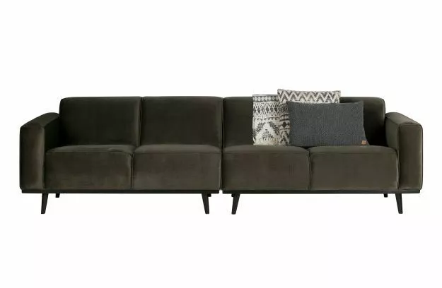 Namnet på den här banken säger allt, eller hur? En bank som denna är ett tydligt inslag i hemmet. En bank bestämmer interiörens atmosfär och denna bank erbjuder en bra bas för flera levande stilar. Uttalandet av Statement är grundläggande, men det sticker ut på grund av dess storlek. Denna rymliga 4-sits soffa erbjuder tillräckligt med utrymme för hela familjen och är fantastisk. Detta kontoutdrag passar perfekt in i BePureHome-kollektionen, är rent och robust och består av flera varianter, tyger och färger. Denna variant är utrustad med varmgrön sammet. Sittdjupet är 63 cm, sittbredden 244 cm och sitthöjden 45 cm. Armstödets höjd är 65 cm och armstödets bredd är 18 cm. Benhöjden är 15,5 cm och ramens höjd 18,5 cm. Sammetstyg med sammetaspekt är mjukt, har full tung kvalitet och är lämpligt för intensiv användning. Tyget har inte testats för ytterligare behandlingar och vi rekommenderar därför att du inte impregnerar soffan. Om detta anses nödvändigt är det på egen risk och vi rekommenderar att du testar det på en plats – utom synhåll. Denna bänk levereras i separata delar. Elementen är lätta att ansluta till varandra med fästen.