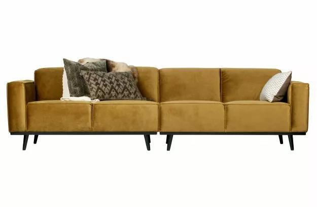 Namnet på den här banken säger allt, eller hur? En bank som denna är ett tydligt inslag i hemmet. En bank bestämmer interiörens atmosfär och denna bank erbjuder en bra bas för flera levande stilar. Uttalandet av Statement är grundläggande, men det sticker ut på grund av dess storlek. Denna rymliga 4-sits soffa erbjuder tillräckligt med utrymme för hela familjen och är fantastisk. Detta kontoutdrag passar perfekt in i BePureHome-kollektionen, är rent och robust och består av flera varianter, tyger och färger. Denna variant är utrustad med honungsgul sammet. Sittdjupet är 63 cm, sittbredden 244 cm och sitthöjden 45 cm. Armstödets höjd är 65 cm och armstödets bredd är 18 cm. Benhöjden är 15,5 cm och ramens höjd 18,5 cm. Sammetstyg med sammetaspekt är mjukt, har full tung kvalitet och är lämpligt för intensiv användning. Tyget har inte testats för ytterligare behandlingar och vi rekommenderar därför att du inte impregnerar soffan. Om detta anses nödvändigt är det på egen risk och vi rekommenderar att du testar det på en plats – utom synhåll. Denna bänk levereras i separata delar. Elementen är lätta att ansluta till varandra med fästen.