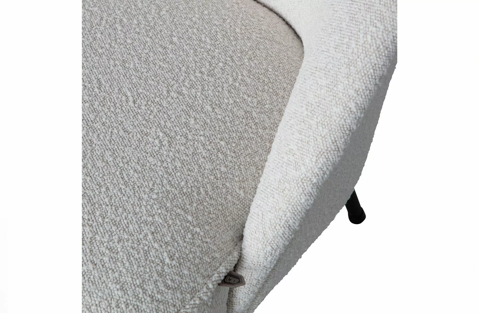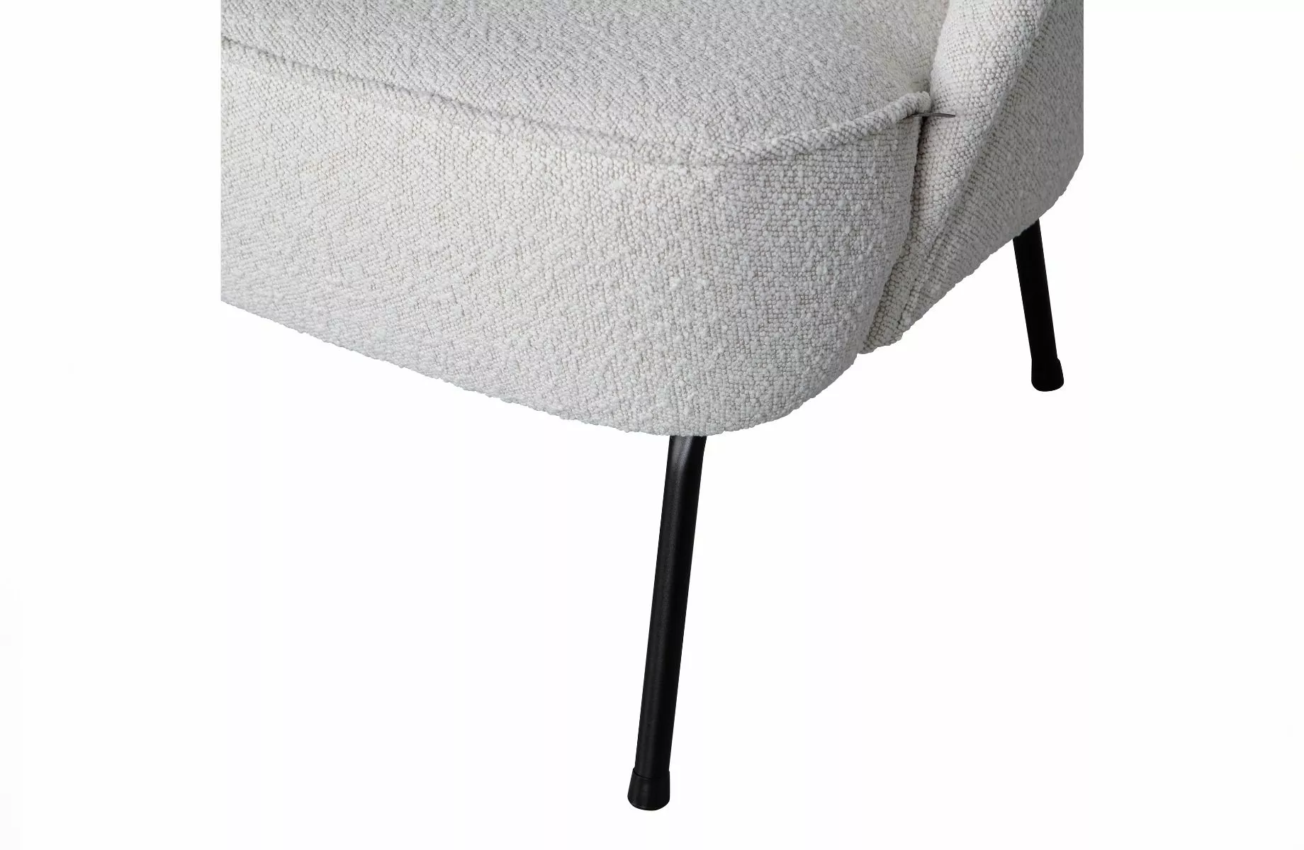 Materialet til Colmar bouclé-stoffet svarer til den siste trenden: myke materialer. Stoffet er behagelig og har en elegant tekstur. Vår Colmar bouclé har en Martindale-vurdering på 100 000, noe som betyr at stoffet er egnet for intensiv bruk. Den tette vevingen sikrer stoffets styrke, noe som gjør at boucléen ikke slites ut eller rives lett. Dessuten har hver farge en høy fargeekthet, men det anbefales å unngå direkte sollys for å unngå fargenyanser. Rammen til Vogue to-seter er laget av metall med et matt sort pulverlakk. Seterammen er laget av en kombinasjon av sponplater og kryssfiner. Setet inneholder elastiske stropper og et T3542-skum som gir en litt fast sittestilling som er behagelig i timevis. Ryggstøtten er fylt med T2120-skum.