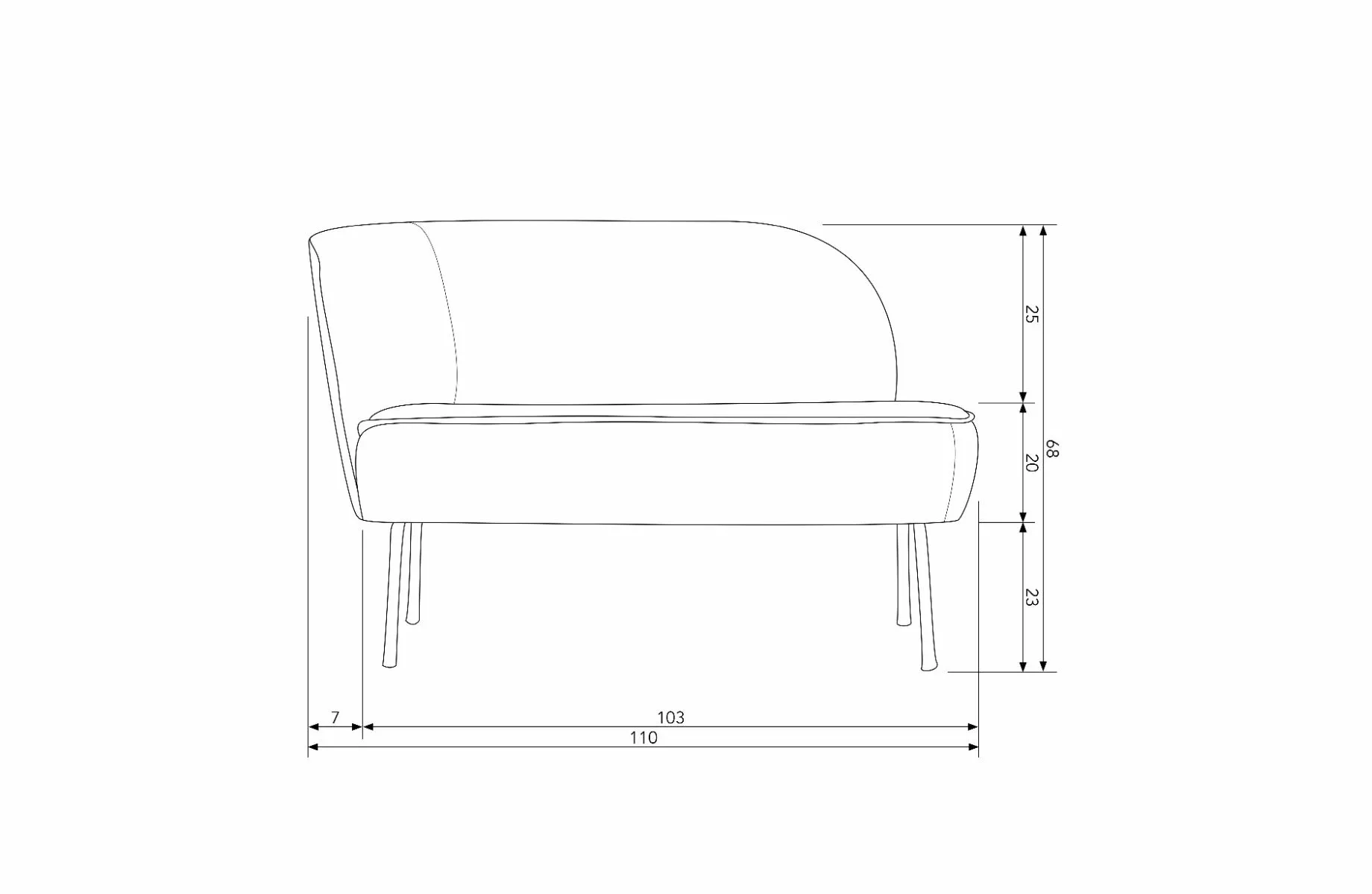 Vår Voquar sammet är gjord av 100% polyester och har en lyxig kvalitet. Detta sammetstyg har en lyxig, matt look. Materialet är mycket lämpligt för intensiv användning (Martindale 90 000). Förutom den snygga designen håller sammetstyget sig vackert länge. Sammetstyget flagnar inte lätt och är färgäkta. Tyget är, till mångas förvåning, ett väldigt lättskött tyg. Ramen på Vogue-loungestolen är gjord av metall med mattsvart pulverlack. Sitsens ram är gjord av en kombination av spånskiva och plywood. Sitsen innehåller elastiska remmar och ett T3542-skum, vilket ger en lite stadig sittkomfort som håller i timmar. Ryggstödet är fyllt med T2120-skum.