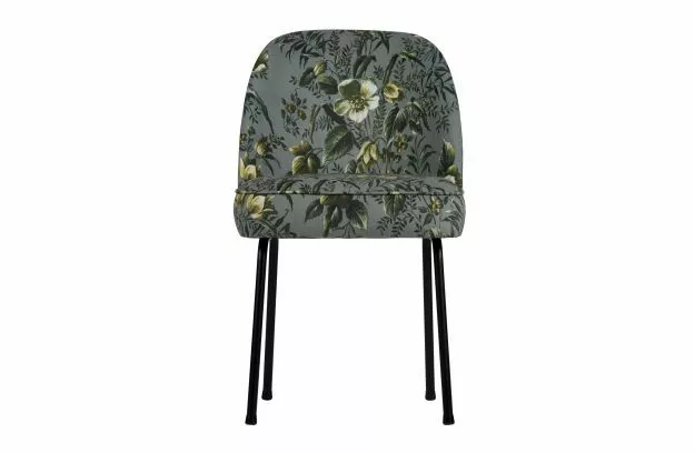 Vogue matstol är klädd med det vackra och rika sammetstyget Kornaline (100% PES) i färgen grå med ett rikt blommigtryck.
