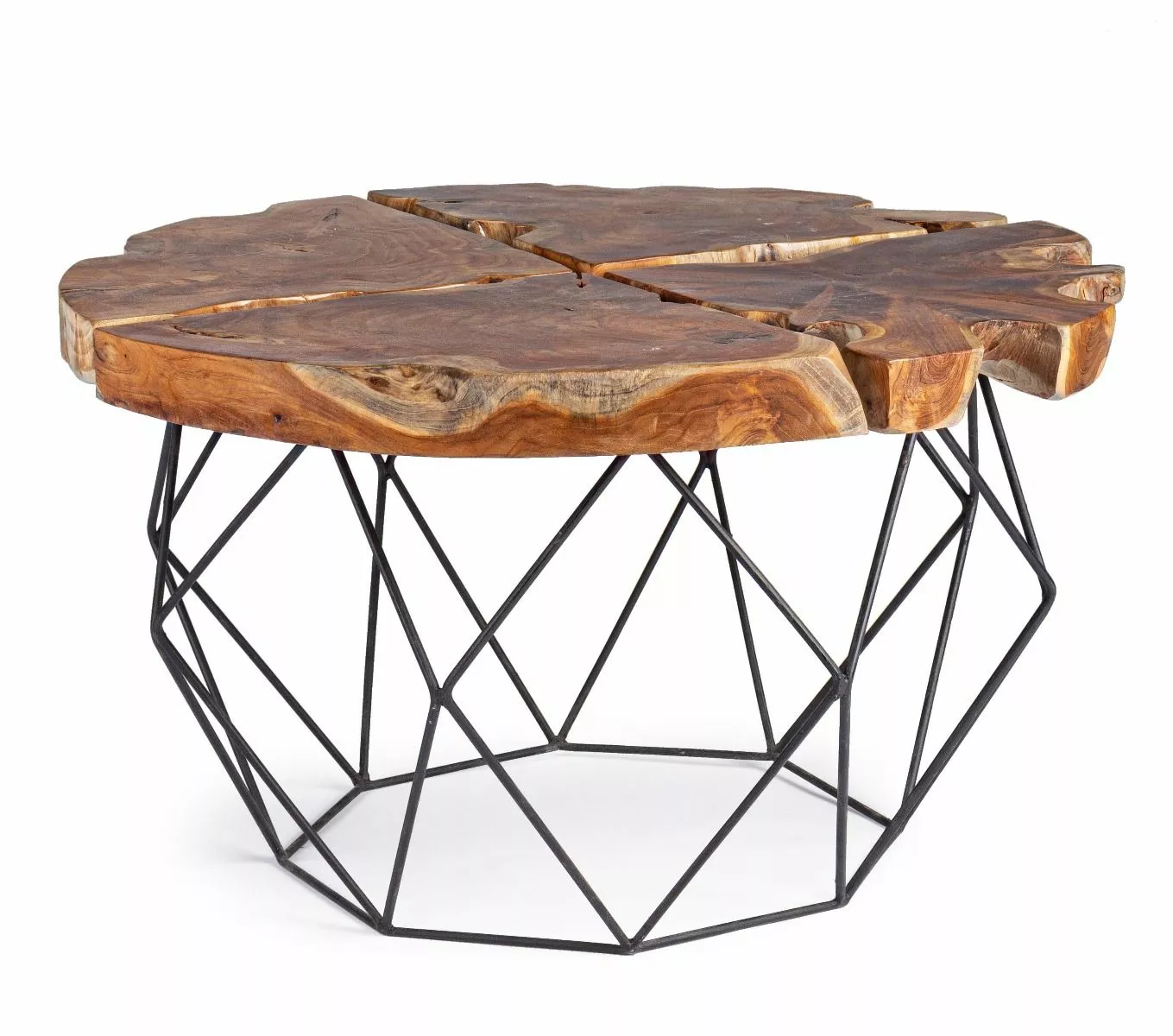 Topp i teakrøtter med naturlig etterbehandling. stålben, epoxy pulverlakkert. formene og størrelsene som dannes av treet er bare veiledende, alle elementene vil være forskjellige fra hverandre.