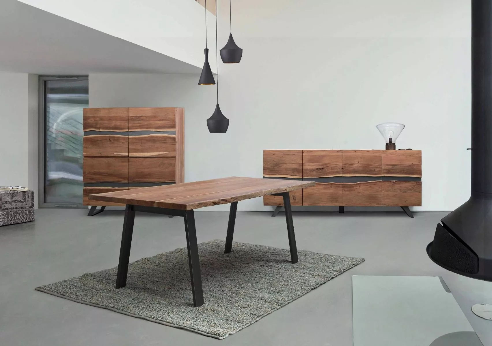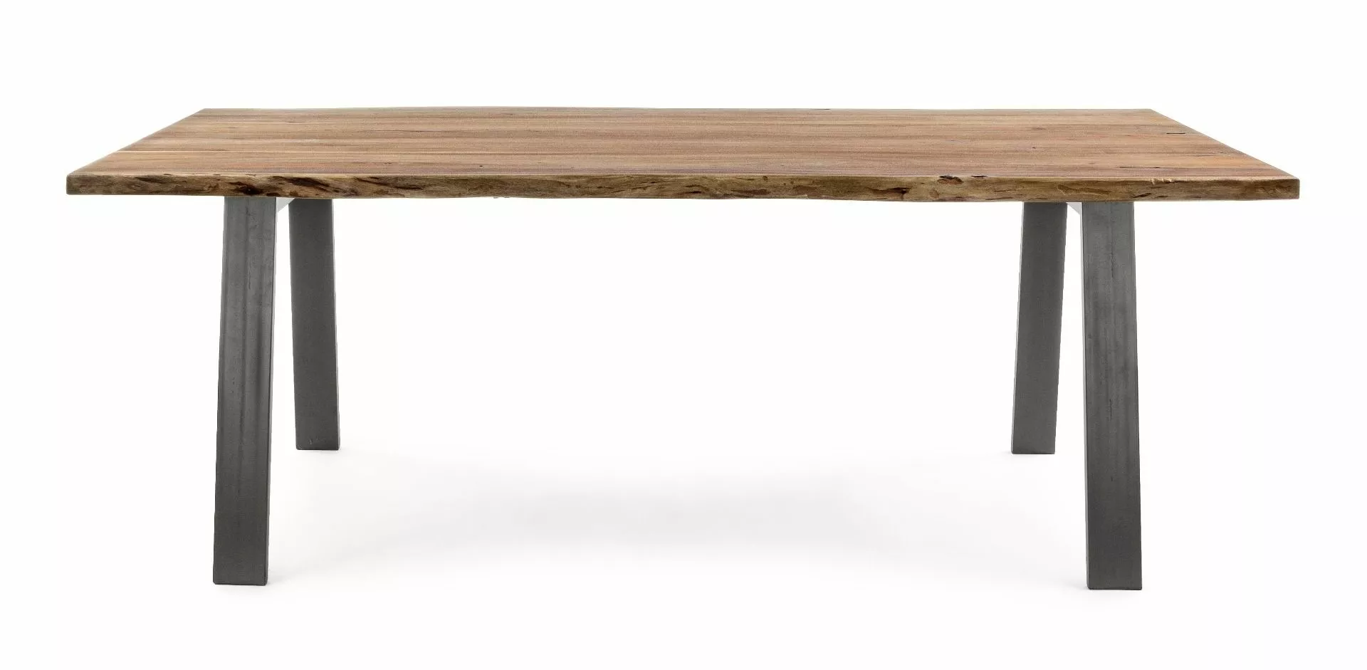 Stålben epoxy pulverlakkert. topp i akasietre med uregelmessige kanter (levende treeffekt). etterbehandling av polyuretanmaling. siden toppen er bearbeidet for hånd, er formene og størrelsene som dannes av treet bare veiledende, alle elementene vil være forskjellige fra hverandre. ben som skal monteres.
