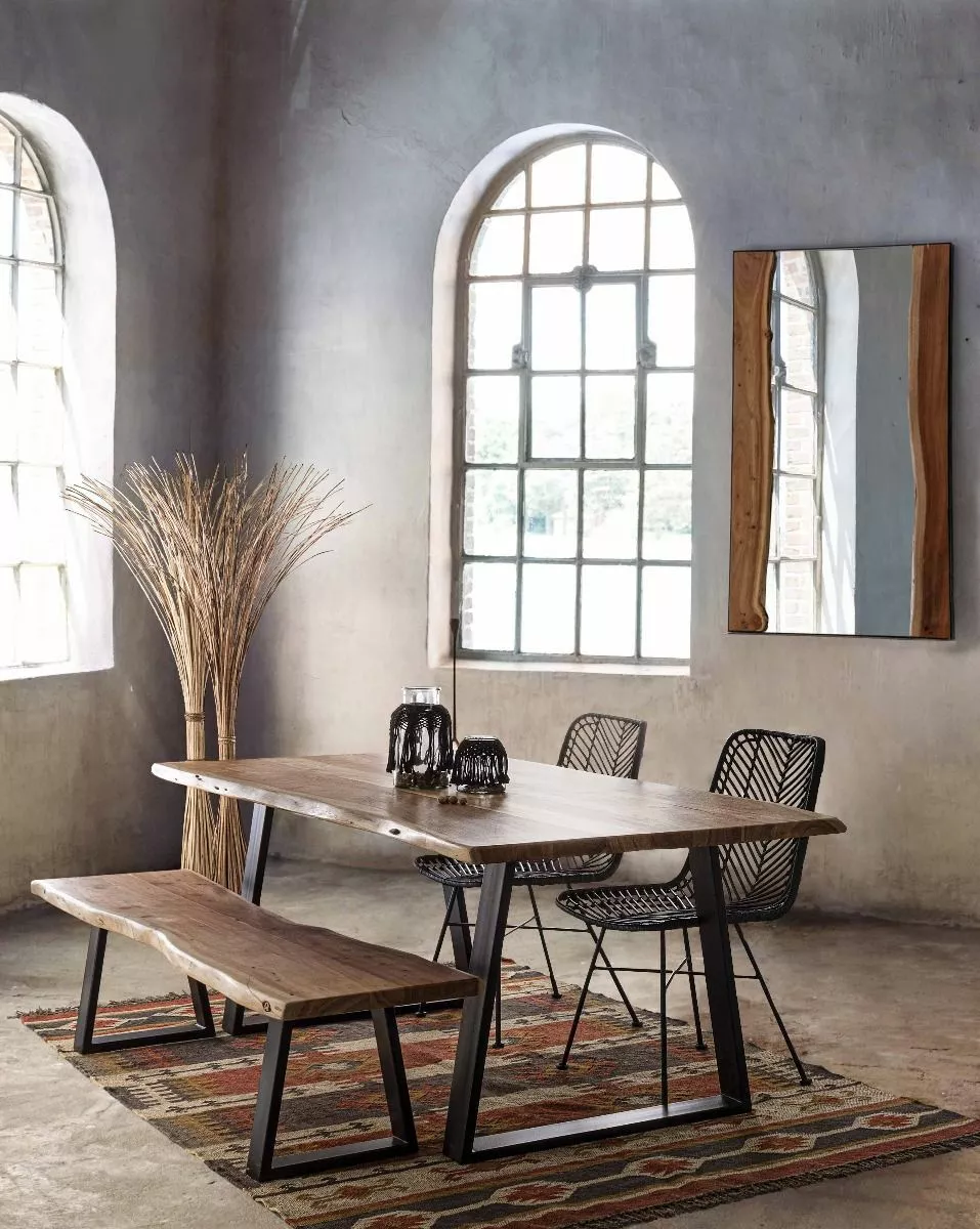 Topp i akasietre, epoxy pulverlakkert i stålben. etterbehandling av polyuretanmaling. siden toppen er bearbeidet for hånd, er formene og størrelsene som dannes av treet bare veiledende, alle elementene vil være forskjellige fra hverandre. ben som skal monteres.