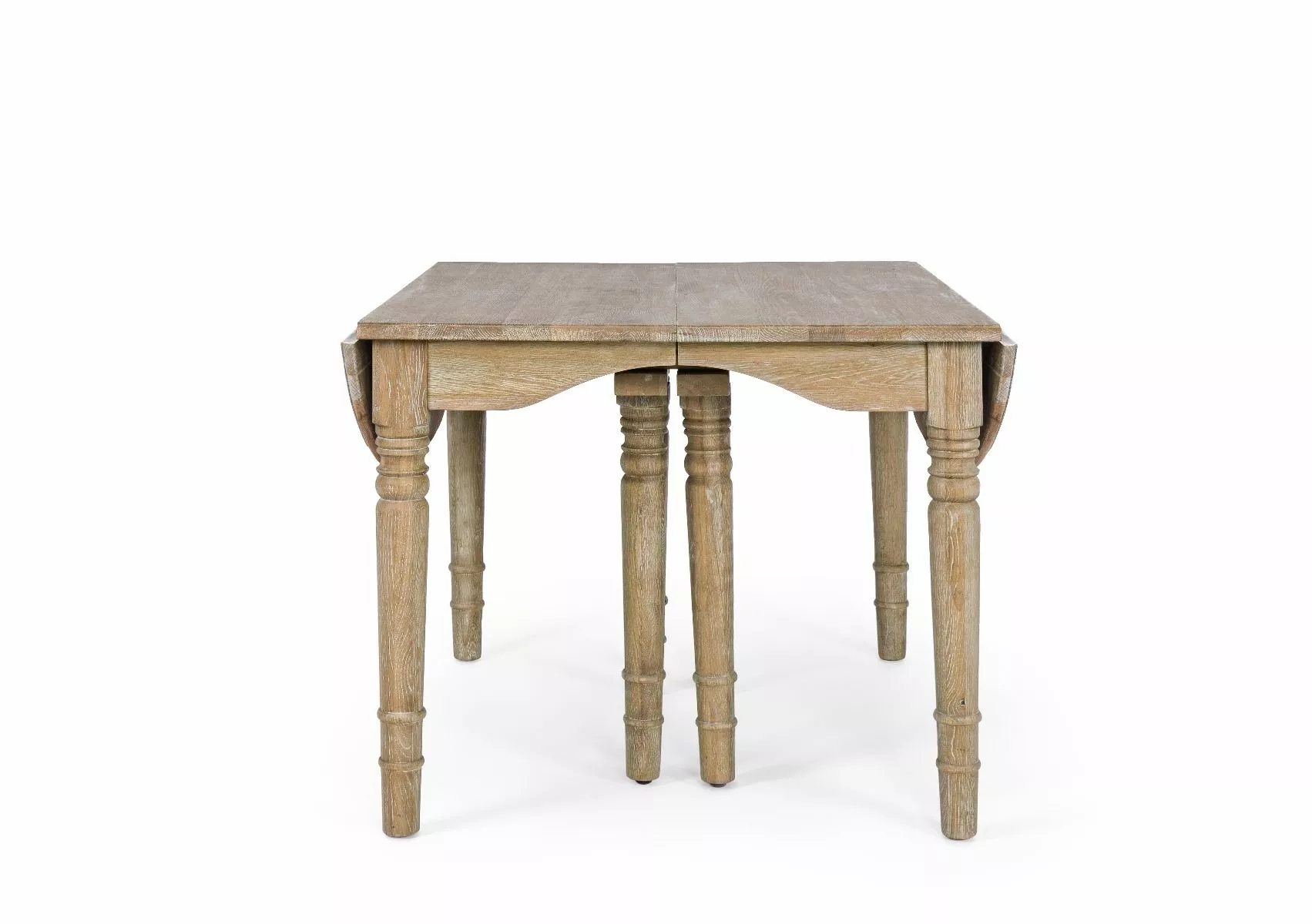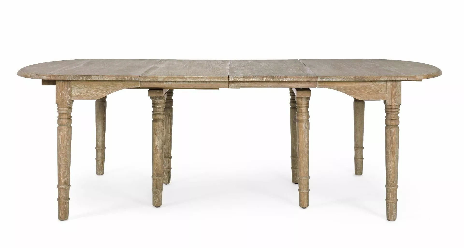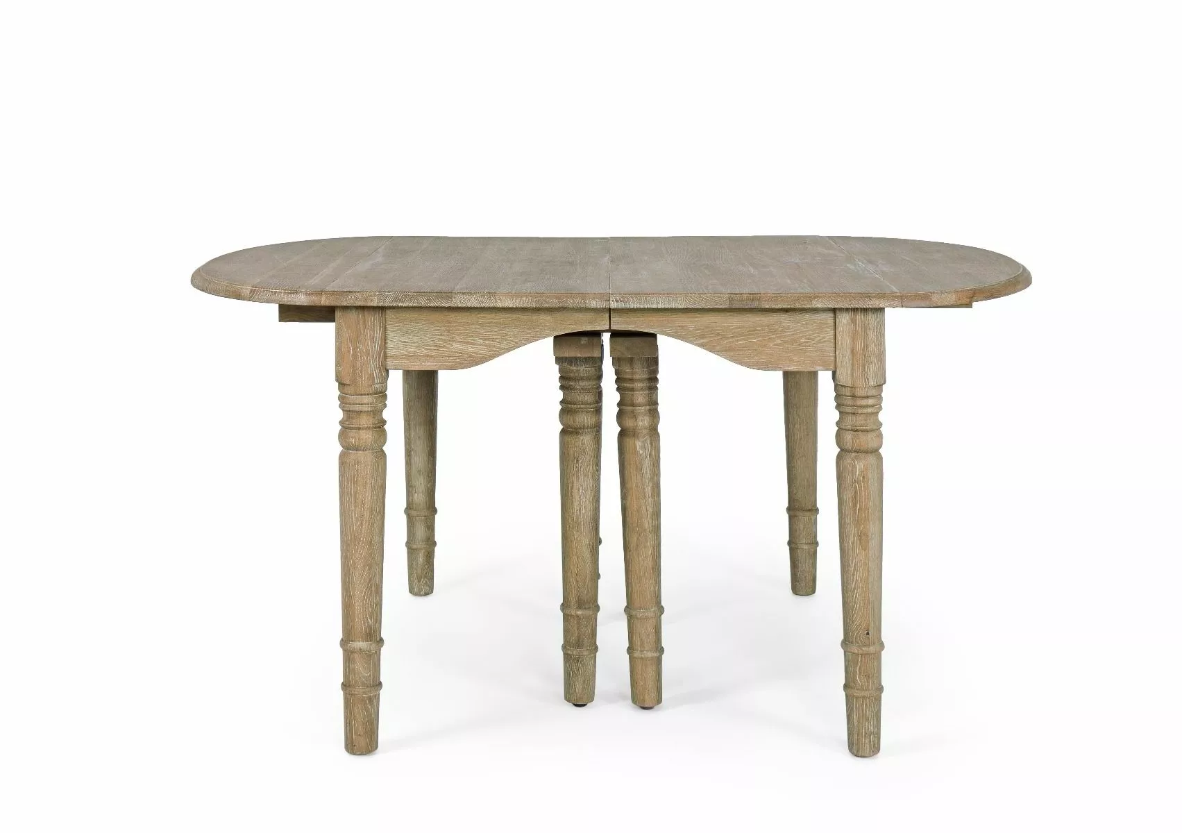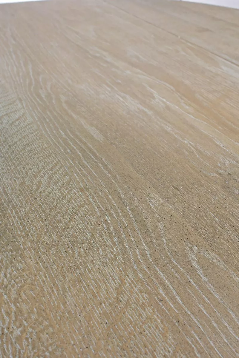 Massiv europeisk eik, vannbasert maling med alderseffekt og voksfinish. Ø110 cm slått sammen. 272×110 helt åpnet. 4 eksterne utvidelser på 40,5 cm. skal monteres