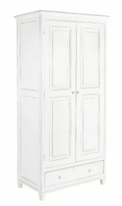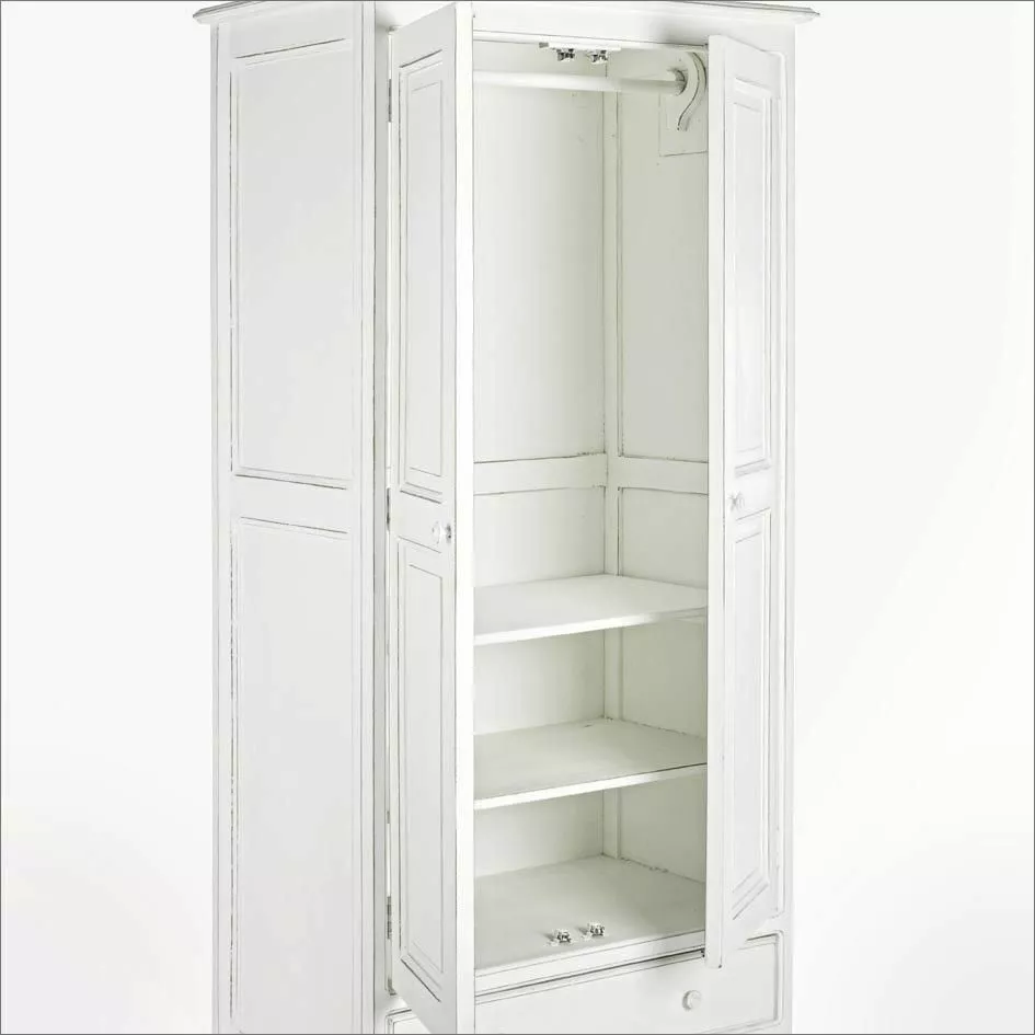 Massivt mangotre. nitrocellulose-basert maling, innvendig plass inkludert klesstang, en fast nedre hylle og en avtakbar topphylle