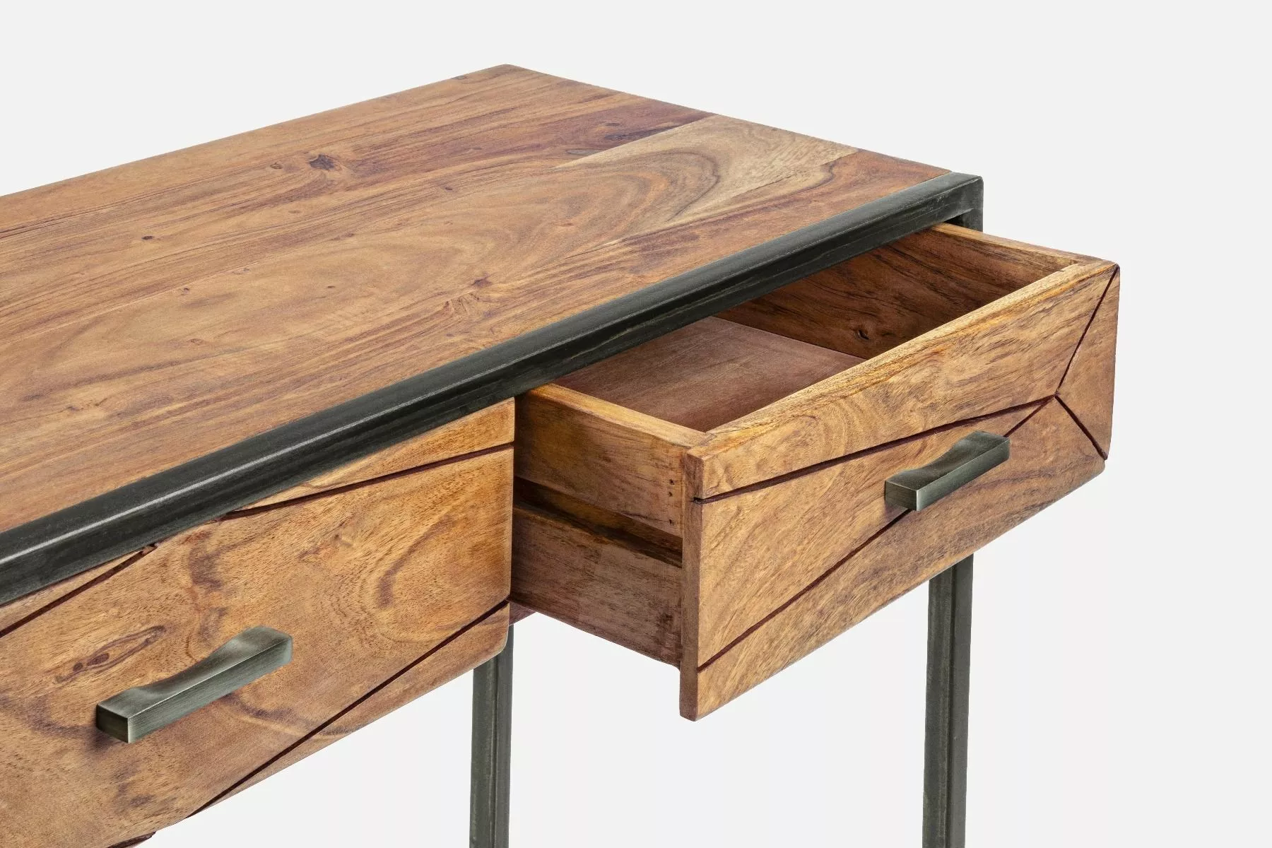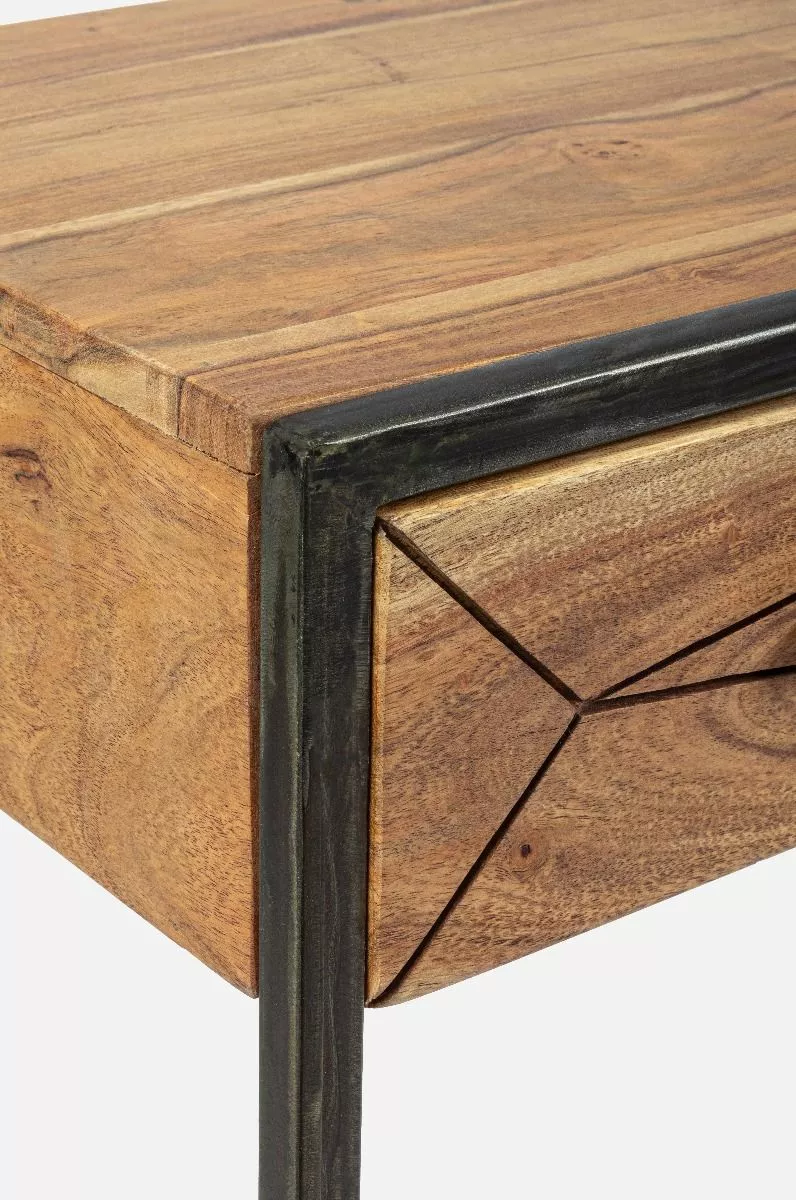 Acacia-tre og stålramme epoxy pulverlakkert, bakside i kryssfiner. beskyttende akrylfinish. stålhåndtak.