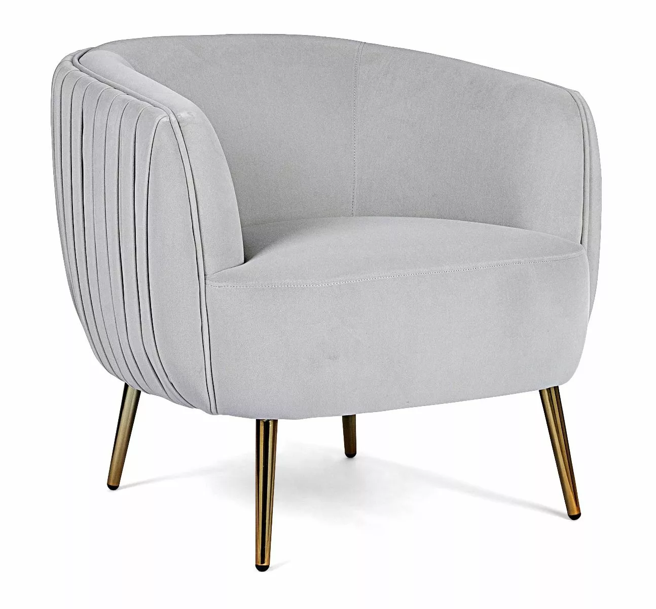 Ramme i kryssfiner, stålben med elektromaling i gullfarge. belegg i polyester fløyel effekt. skumtetthet 22 kg / m3. Trekk kan ikke tas av. ben som skal monteres.