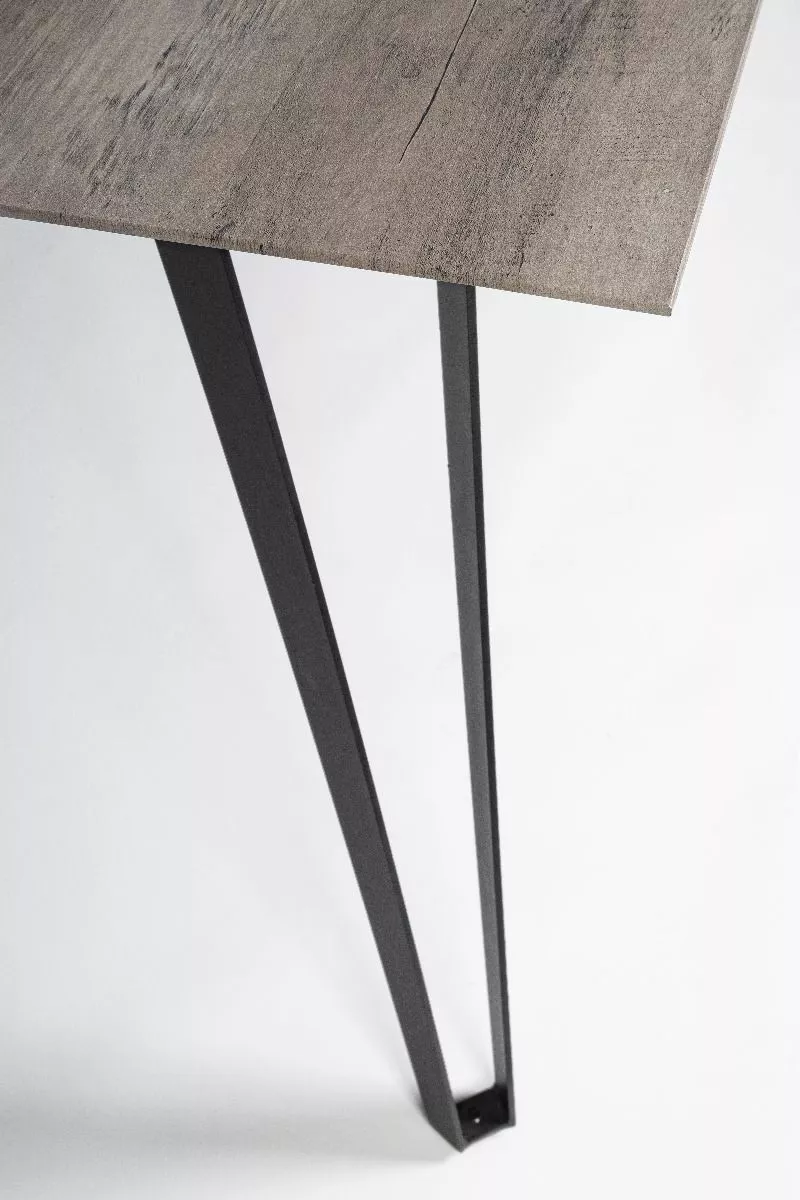 Epoxy powder coated steel legs. mdf top covered with wood looking melamine paper. to be assembled.