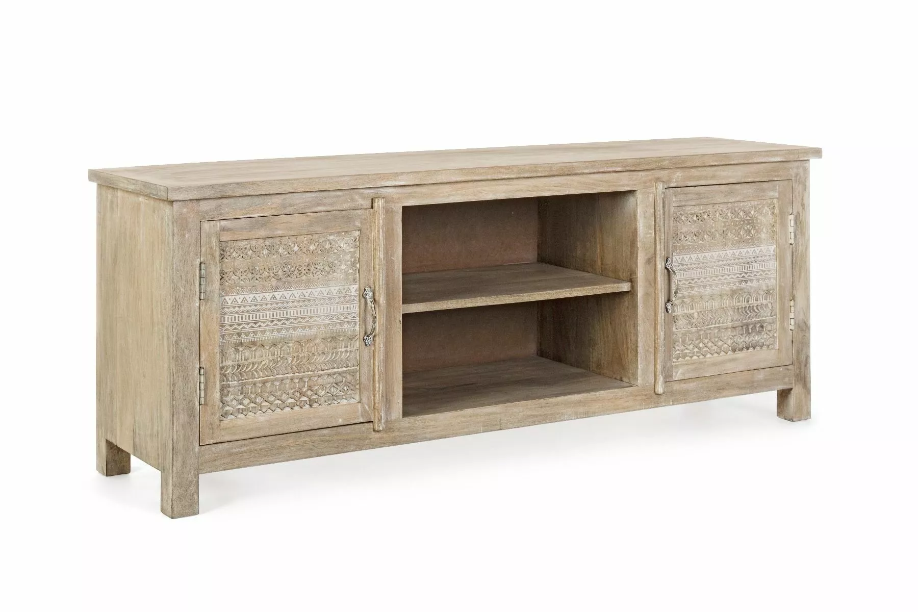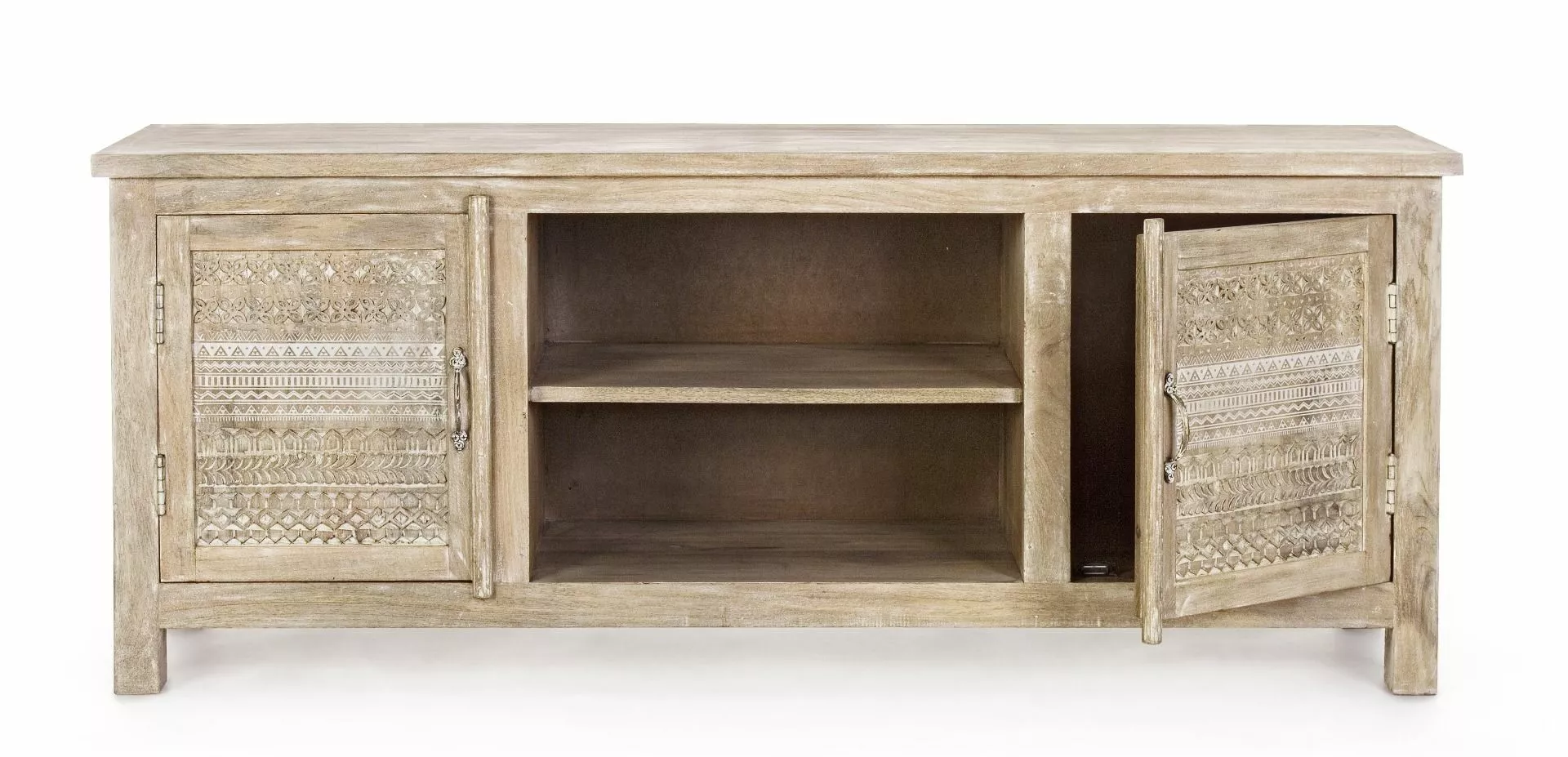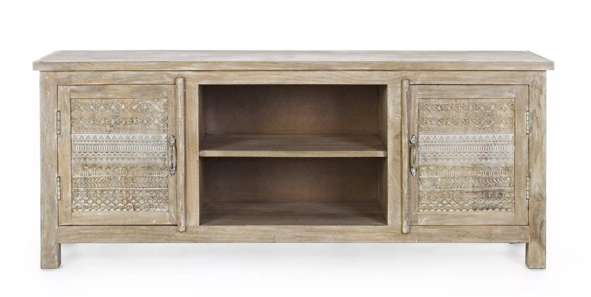 Mango treramme med håndlagde utskårne dekorasjoner, bakside i MDF. etterbehandling av nitrocellulose. messinghåndtak.
