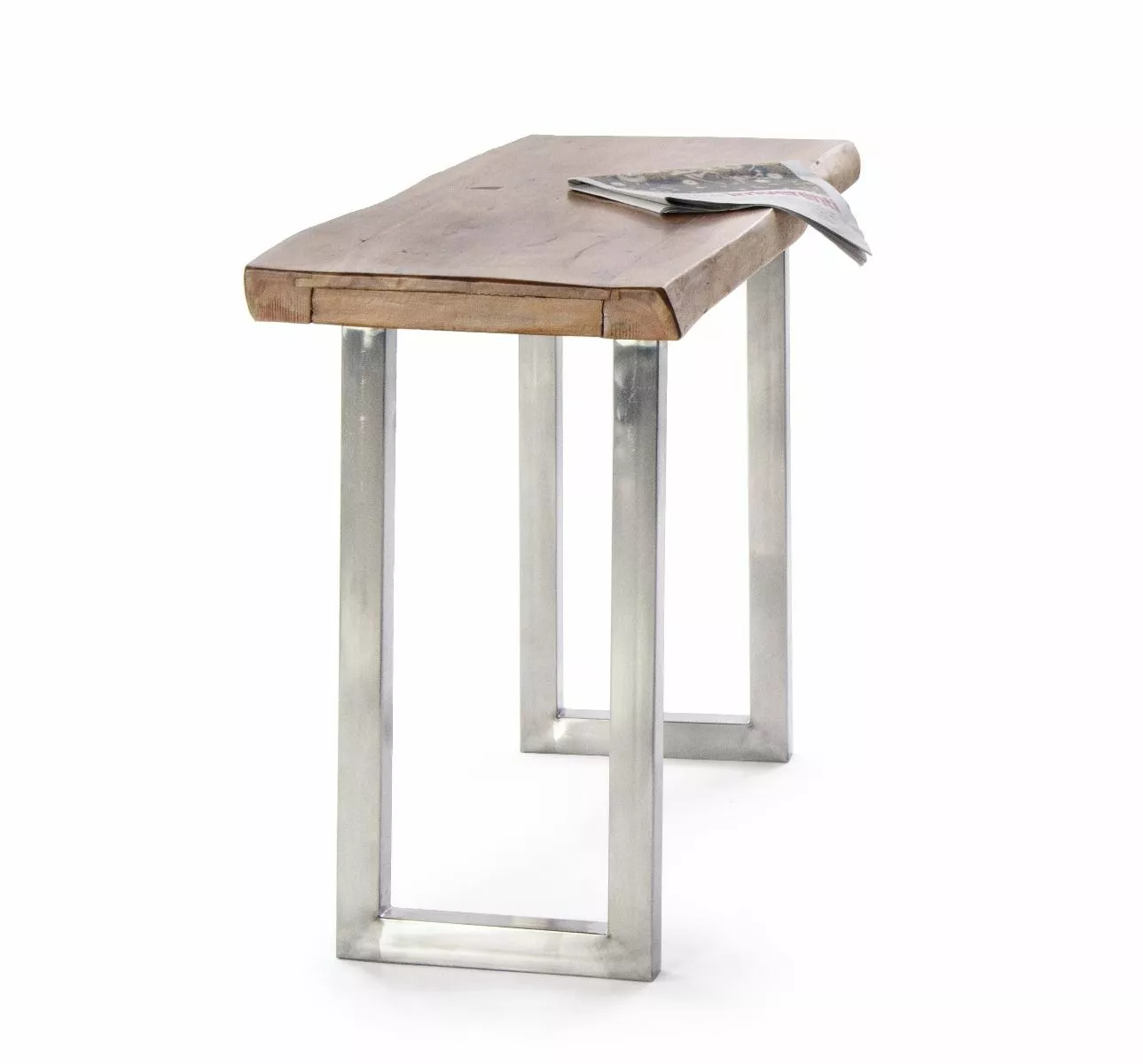 Ben i rustfritt stål, topp i akasietre (originale stokker). etterbehandling av nitrocellulose. siden toppen er bearbeidet for hånd, er formene og størrelsene som dannes av treet bare veiledende, alle elementene vil være forskjellige fra hverandre. ben som skal monteres.