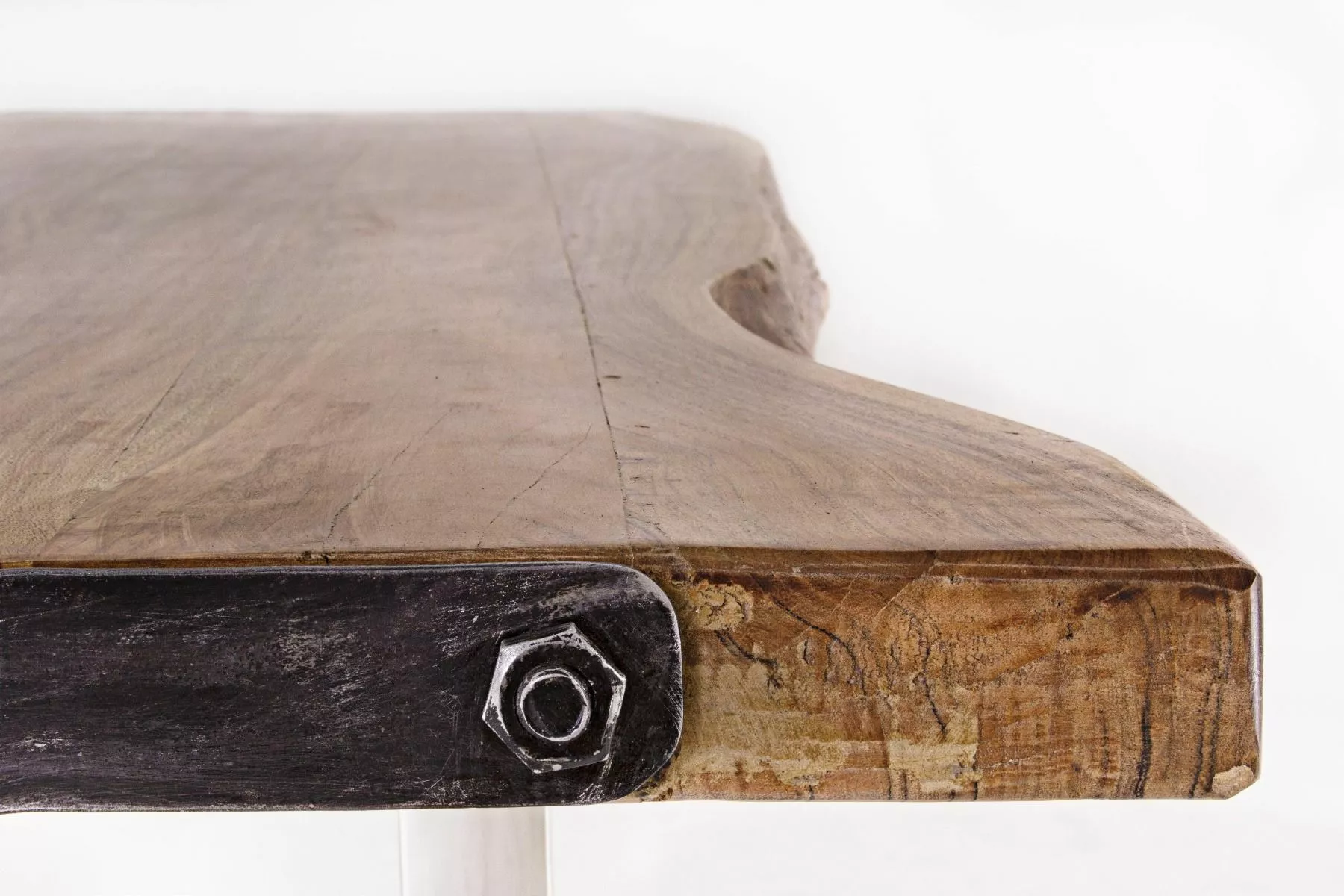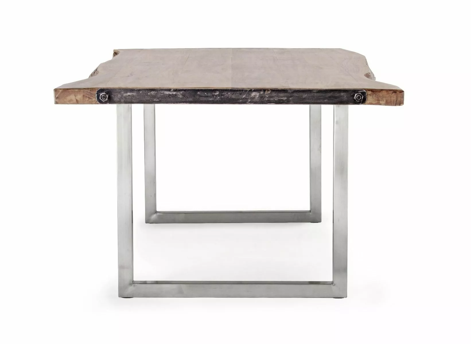Ben i rustfritt stål, topp i akasietre (originale stokker). etterbehandling av nitrocellulose. siden toppen er bearbeidet for hånd, er formene og størrelsene som dannes av treet bare veiledende, alle elementene vil være forskjellige fra hverandre. ben som skal monteres.