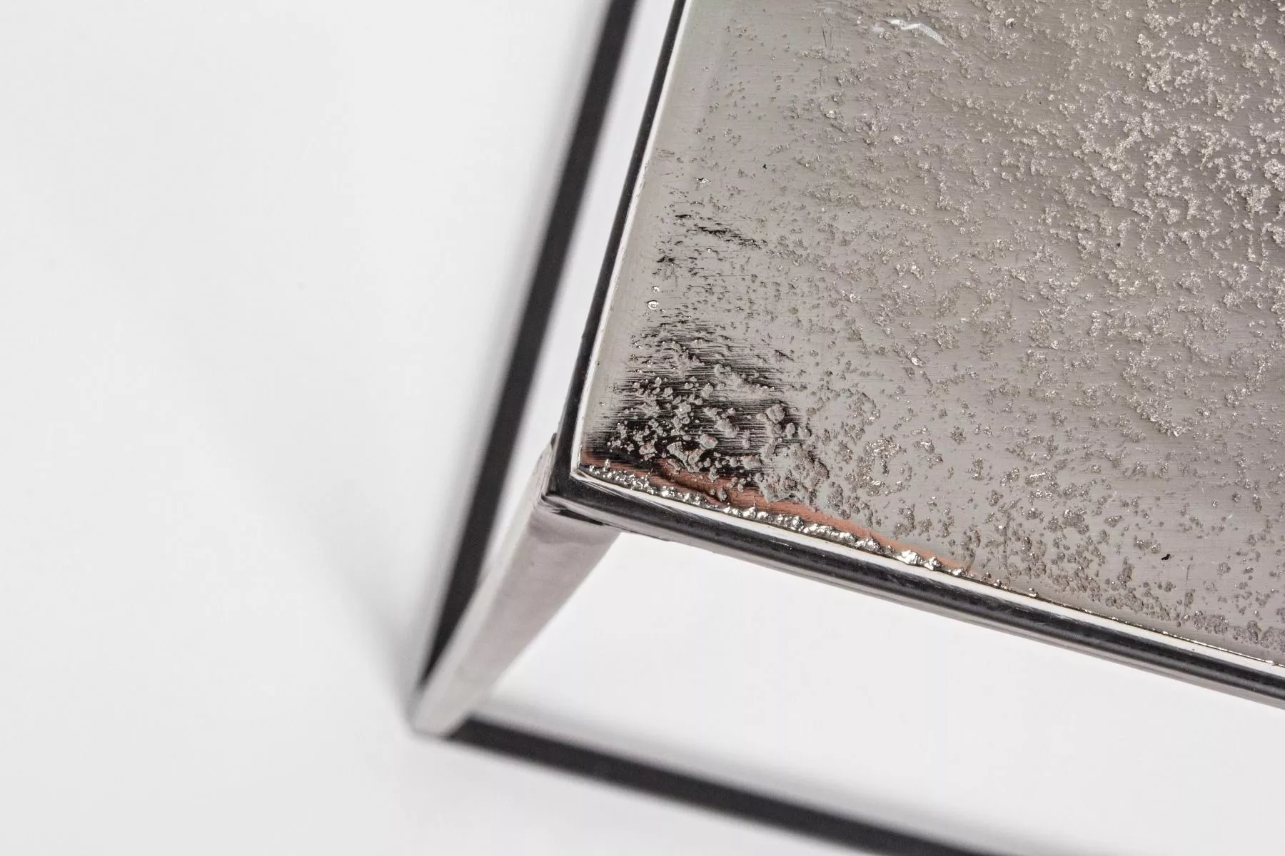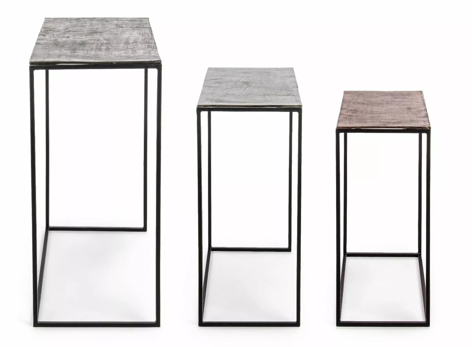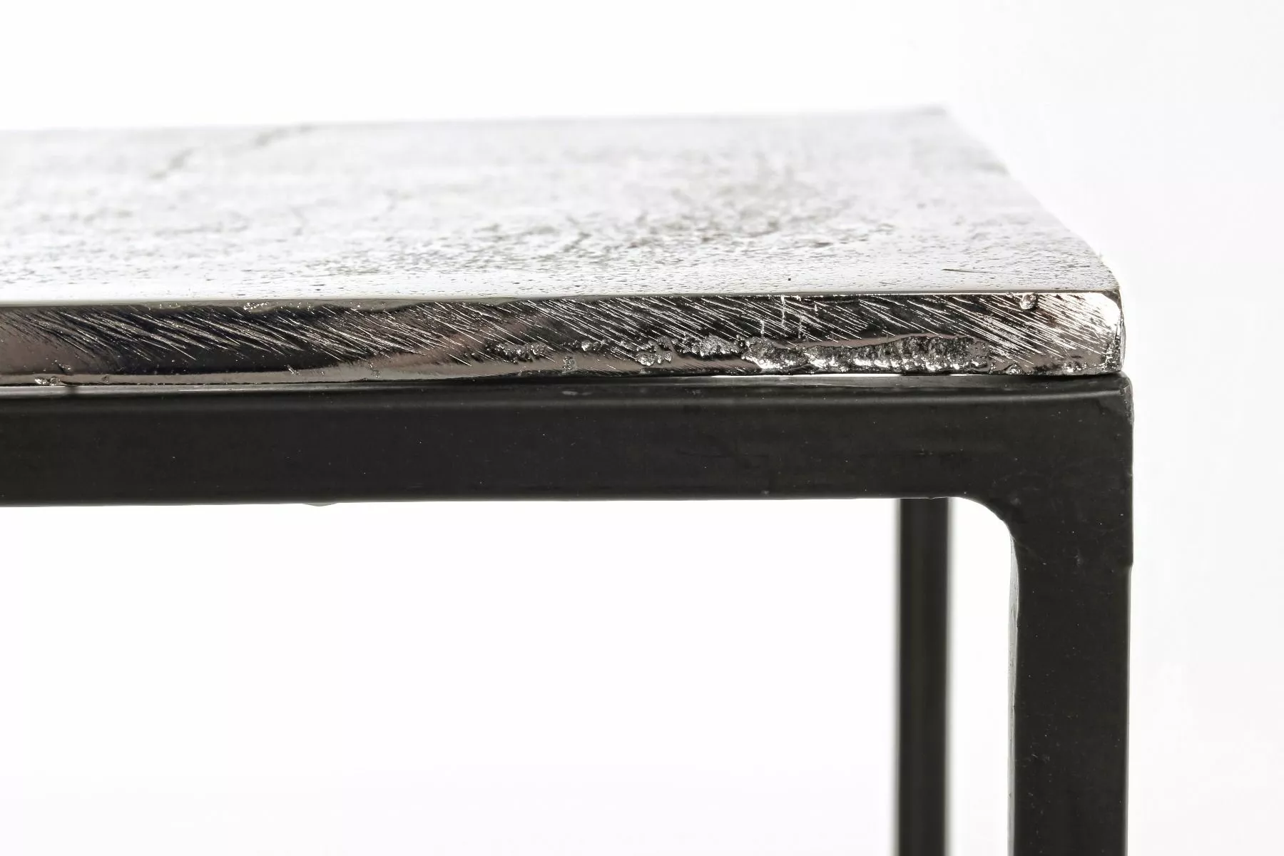Stålramme, pulverlakkert med epoxy. aluminiumsplate med belagt og antikk etterbehandling.