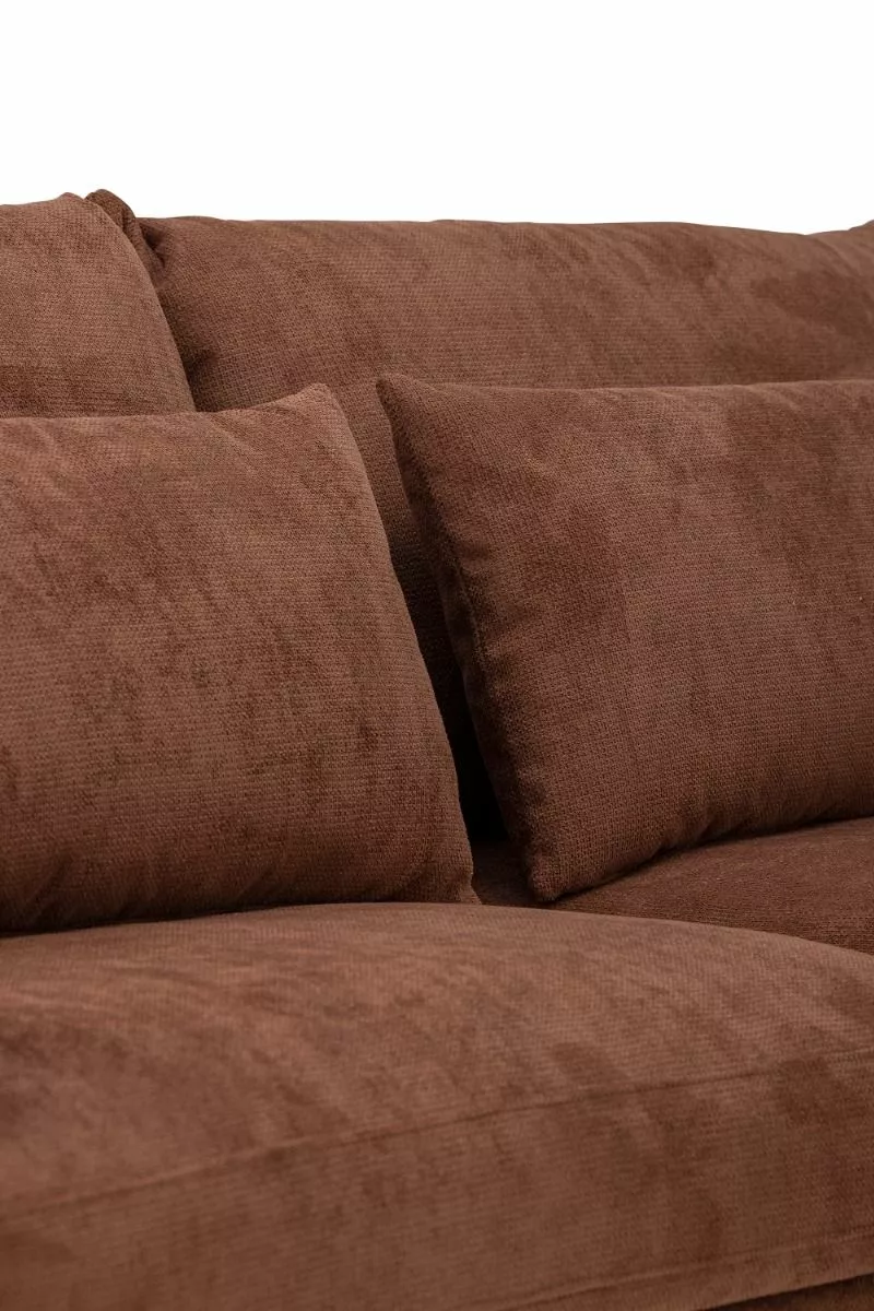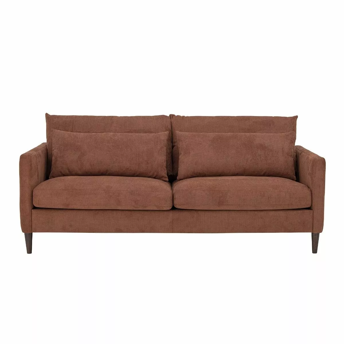 Thess sofa fra Creative Collection er en behagelig og myk sofa i en fin brun farge. Stoffet er resirkulert polyester fra vannflasker og bena er naturlige eikeben. Sofaen er perfekt i stuen, hvor den vil gi et elegant og koselig uttrykk. Den matchende Thess Lounge-stolen selges separat.