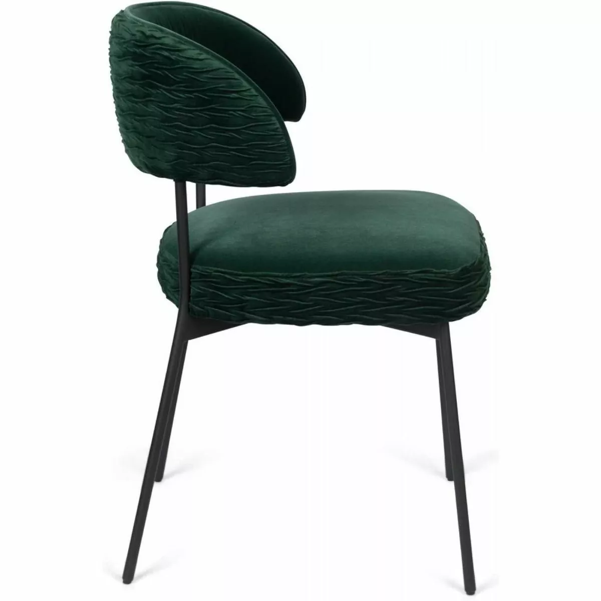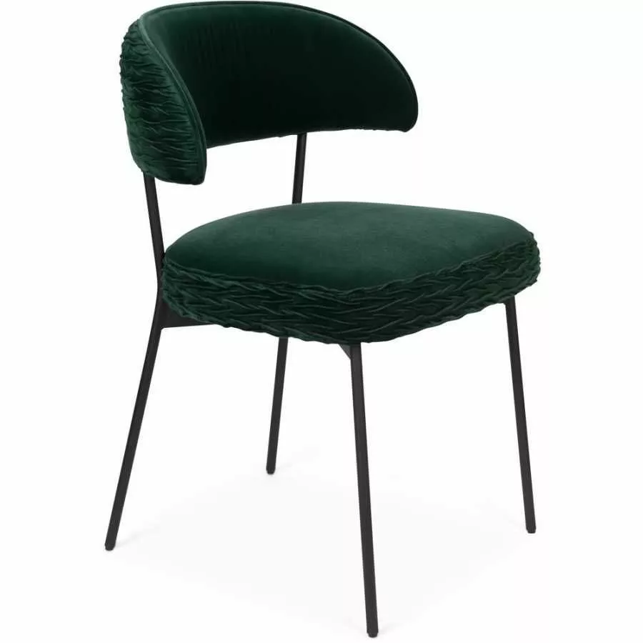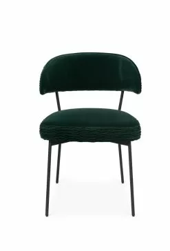 Straight, powder-coated legs meet a richly textured velvet upholstery in dining chairs designed to bring a special touch to an everyday occasion.
