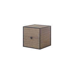 Ram 28 är en flexibel förvaringslösning som består av en kvadratisk modul i en kubistisk ram. Det enkla förvaringssystemet är inspirerat av Mogens Lassens Kubus ljusstake, baserad på strikta matematiska formler och designad med största precision. Rammodulerna finns i fyra storlekar: 28, 35, 42 och 49, för användning i otaliga sammanhang. Modulerna kan hängas direkt på väggen eller stå ensamma på golvet. Kombinera Frame-modulerna för att skapa en klassisk bokhylla, ett nattduksbord, en rumsavdelare eller något helt annat. De möjliga kombinationerna är oändliga. Rammodulerna finns med eller utan luckor, hyllor och lådor och säkerställer att du kan designa den perfekta förvaringslösningen för att matcha dina behov av organisation och förvaring. Denna variant är en klassisk Frame 28-modul med dörr.