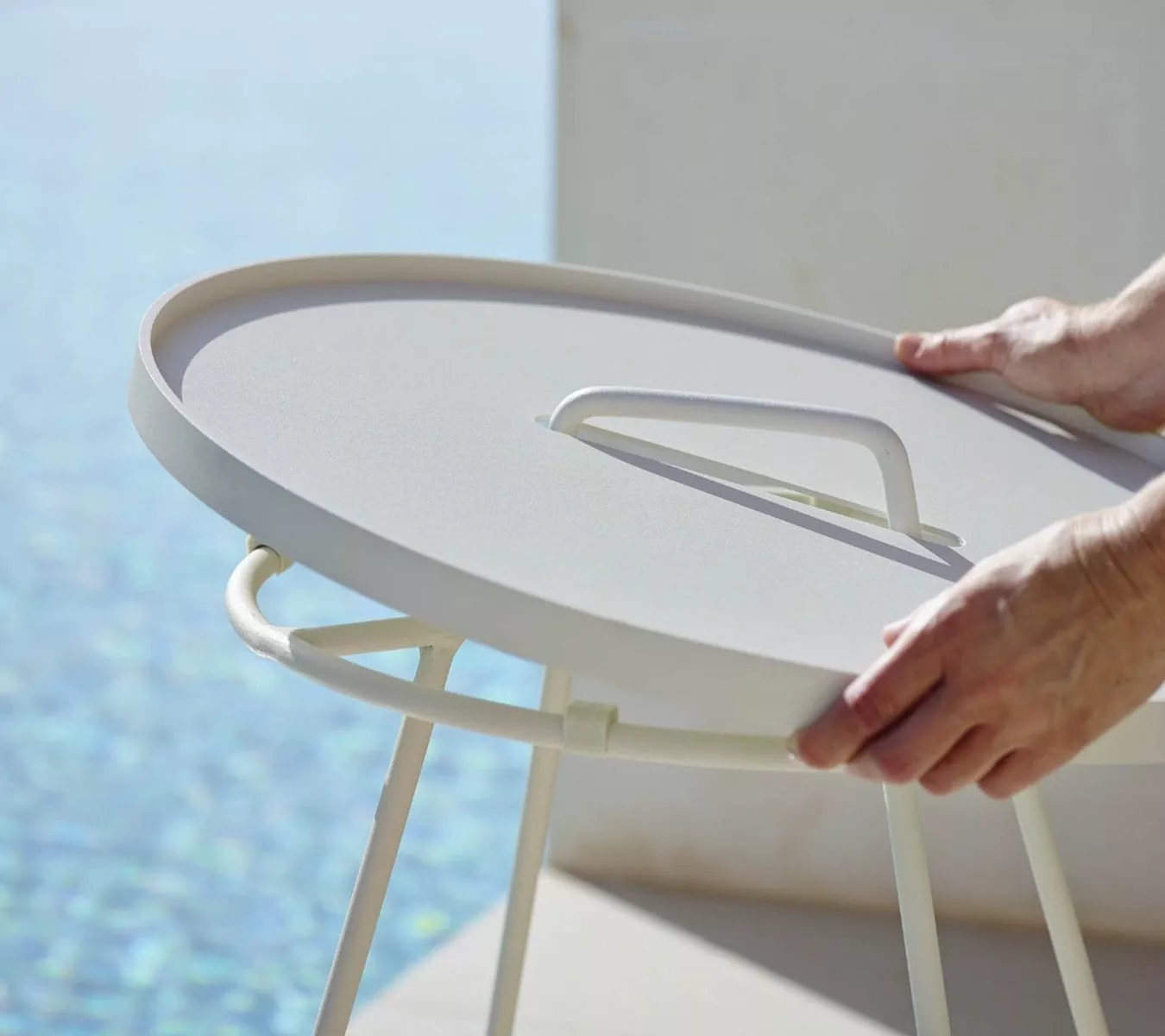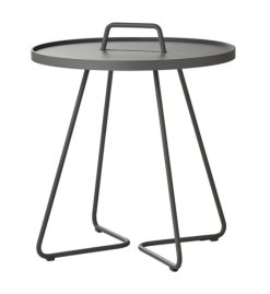 On-the-Move är ett trendigt, lätt och elegant sidobord. Handtaget på bordet, som är en integrerad del av designen, gör det enkelt att flytta runt. Den rörliga lådan kan förvandla bordet från ett designbord till en praktisk serveringsbricka på kort tid. Tillverkad av aluminium och är det perfekta tillbehöret för utomhus- och inomhusbruk. Designad av STRAND + HVASS.