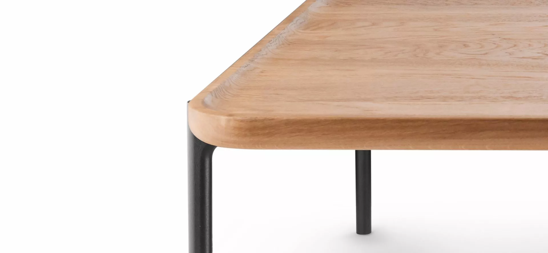 Bordet består av en bordsskiva i massiv ek och en tillhörande bas i svart pulverlackerad aluminium.