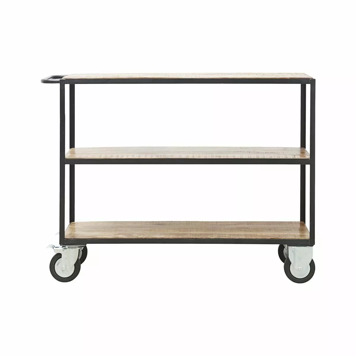 Denna vackra möbel från House Doctor är en kombination av oupprullat hyllsystem och en vagn. Möblerna kan utformas på många olika sätt, så att de passar exakt efter dina behov och din personliga stil. Hyllorna är gjorda av mangoträ och har ett naturligt utseende med massor av struktur. Basen är gjord av järn och lägger till något industriellt och minimalistiskt. Hyllorna har en längd på 130 cm. och en bredd på 40 cm. Möblerna i sig är 98 cm. högt.