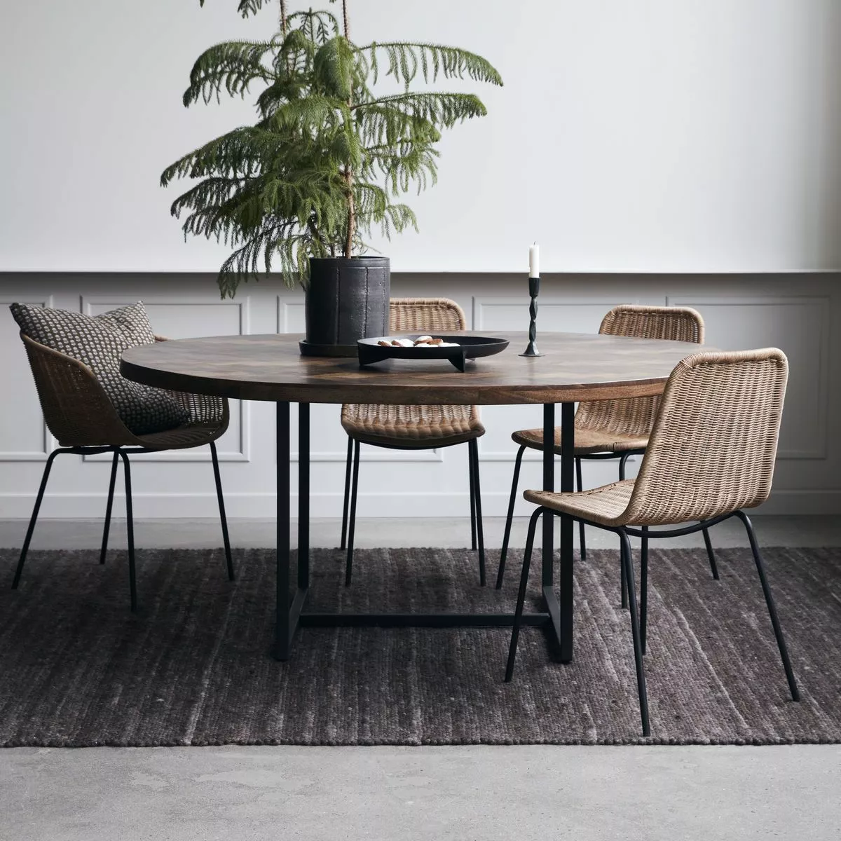 Gi spiseplassen en tidløs, elegant makeover med Kant fra House Doctor. Det runde spisebordet kommer med en stålramme som gir balanse til bordet av mangotre i et stilig fiskebeinsdesign. Varierende nyanser av brunt lar treverket skille seg ut som en fremtredende del av det generelle utseendet. Gjør Kant til stedet hvor dere samles over middagen, feirer spesielle anledninger og bare nyt de små, hverdagslige øyeblikkene med familien. Når man allikevel bruker så mye tid rundt et spisebord, gjør det minneverdig med Kant.