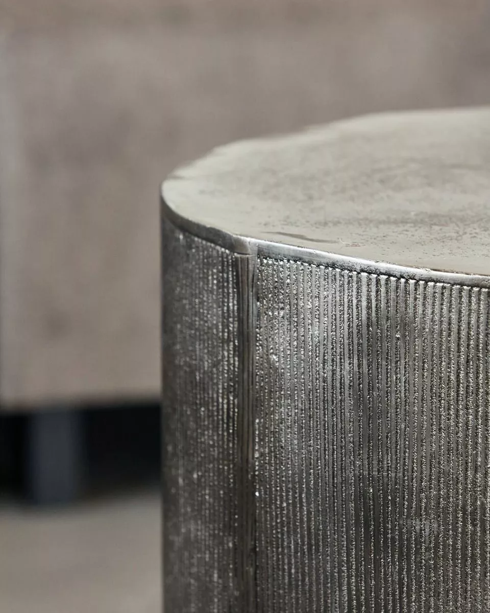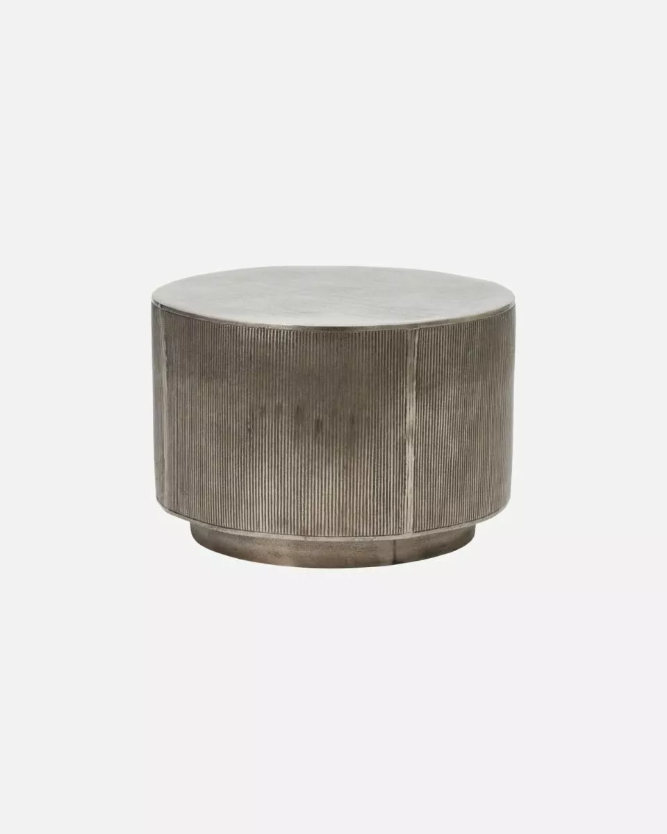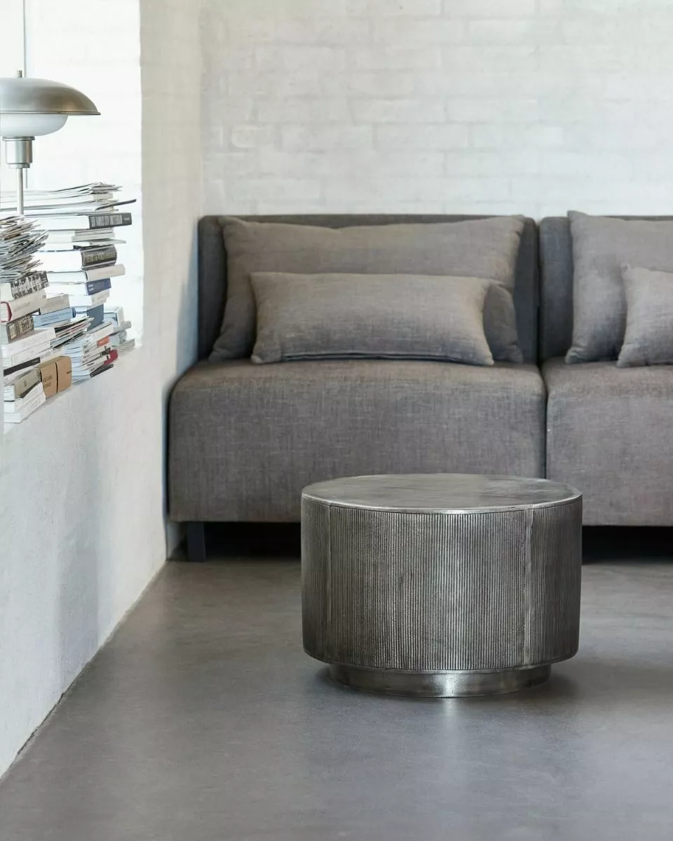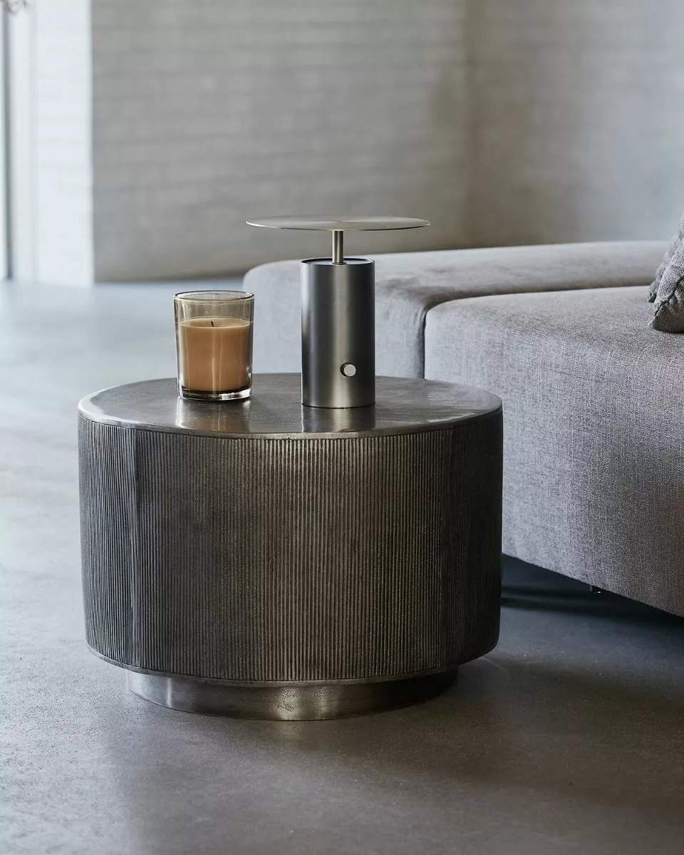 Oppgrader sitteområdet og praktisk talt hele stuen med Rota salongbord. Det runde aluminiumsbordet fra House Doctor er et vakkert innslag i innredningen med sin sølvfargede nyanse og de loddrette rillene som en ekstra detalj. En tidløs design som bringer diskret eleganse til rommet du bruker mest – ikke minst på grunn av overflaten med dens bevisste ufullkommenheter. Legg et teppe under for å ramme inn salongbordet og legg til et personlig preg med din favorittvase eller lysestake. Vi anbefaler bruk av underlag for å beskytte bordplaten. Også tilgjengelig i en større versjon og andre farger.