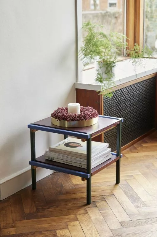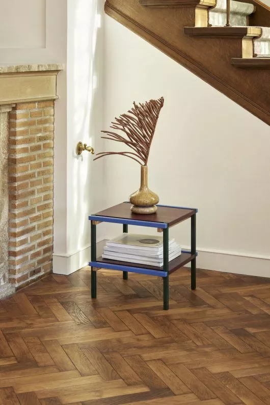 Dette lille sidebordet i tre er iøynefallende. Oppmerksomhetssøkende. Oppsiktvekkende til og med. Bestående av flerfargede biter av FSC®-sertifisert tre i blått, burgunder, gult og mørkegrønt, vil det enkle, minimalistiske og finurlige uttrykket vinne deg over umiddelbart. Bruk den som en god sofakammerat eller som et frittstående stykke på gangen med en vase og vakre, friske blomster.