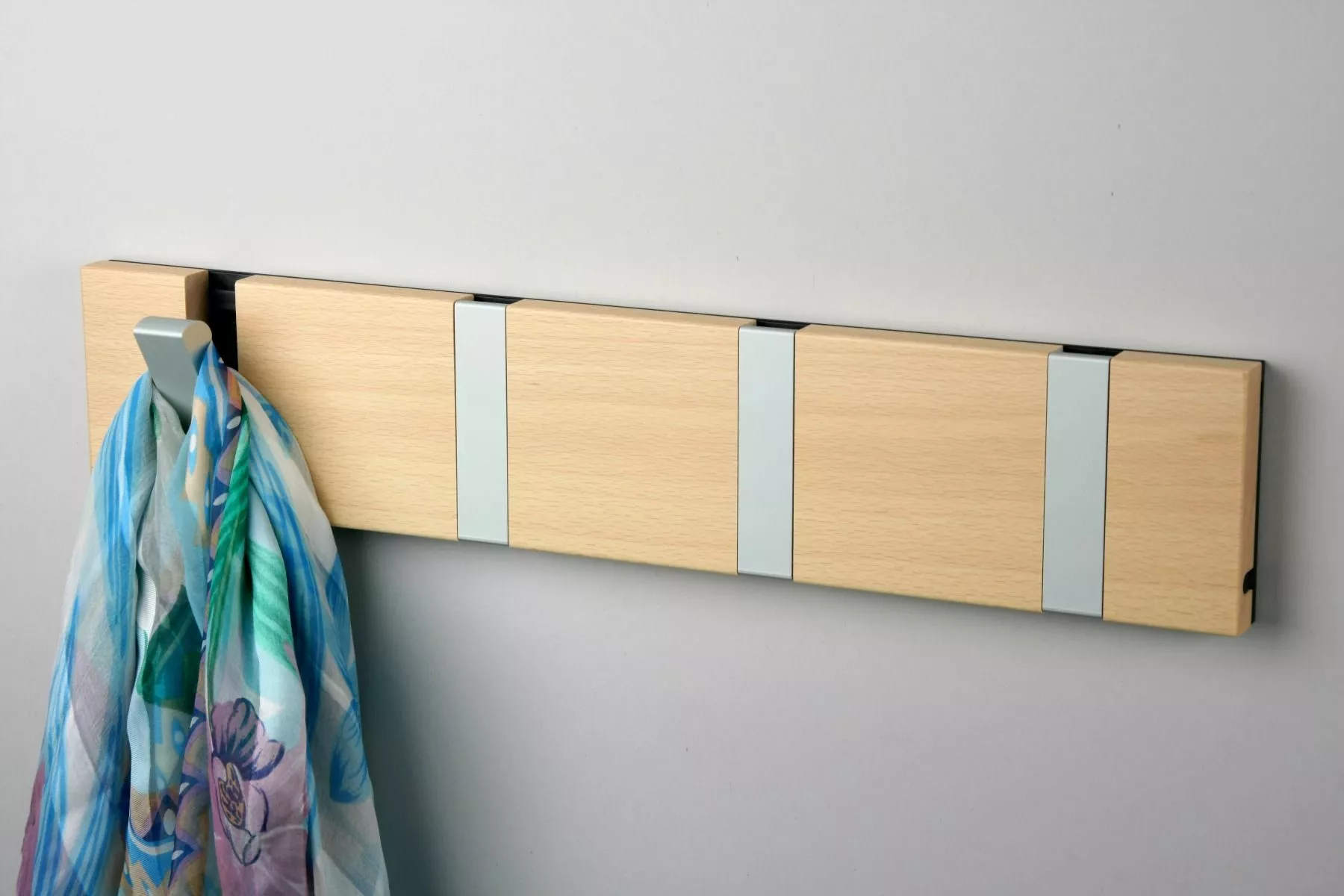 Robust och elegant klädhängare med 4 krokar. Välj mellan flera träslag och ett brett utbud av färger.