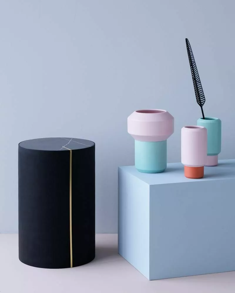 VERA-samlingen för Lucie Kaas använder rena former som ett sätt att lyfta fram materialets skönhet. Kombinationen av gummipartiklar, marmor och mässing med olika strukturer skapar vackra föremål som ger ett utrymme i struktur och elegans.