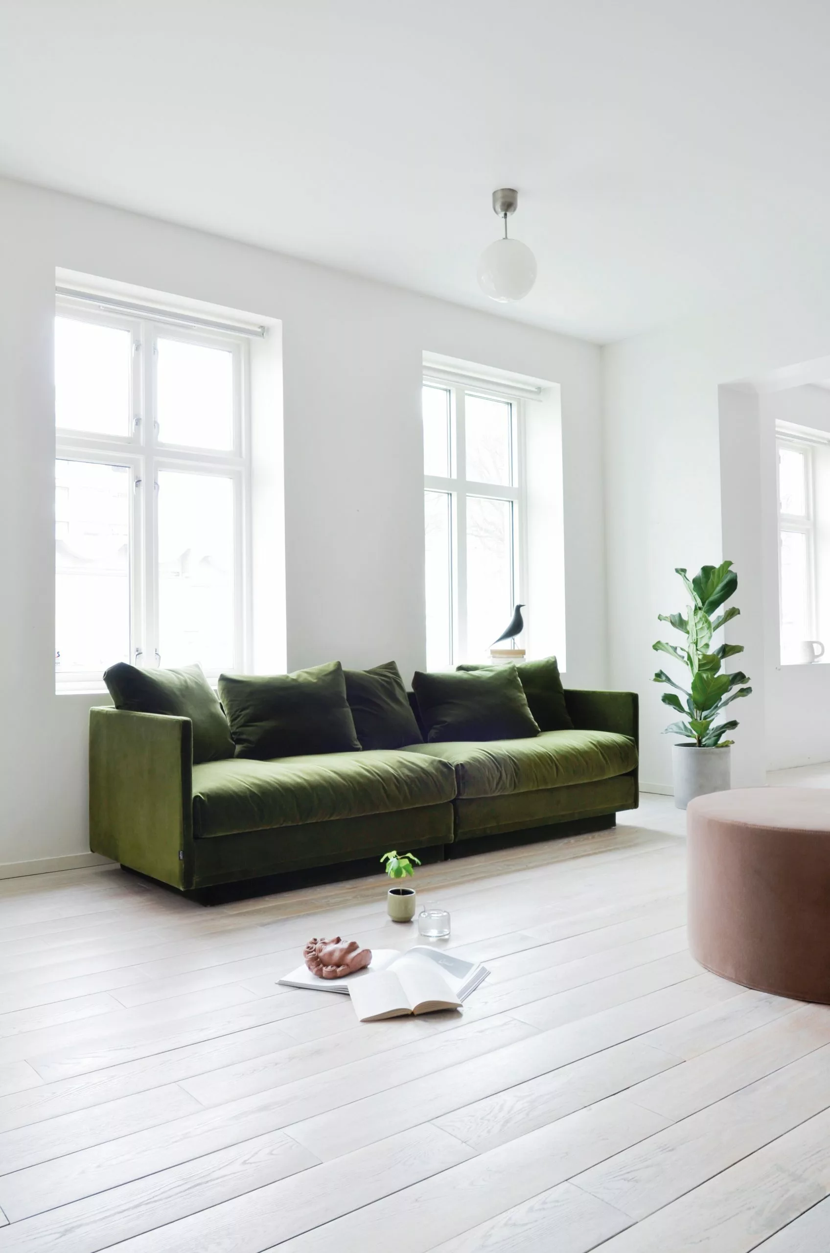 Lun modul soffa är utformad för att ta minst utrymme utan att kompromissa med komforten. Smala armstöd och rygg ger mer plats för ett generöst säte med stor, mjuk dunkudde. Välj mellan en stoppad sockel eller ben av svart metall.