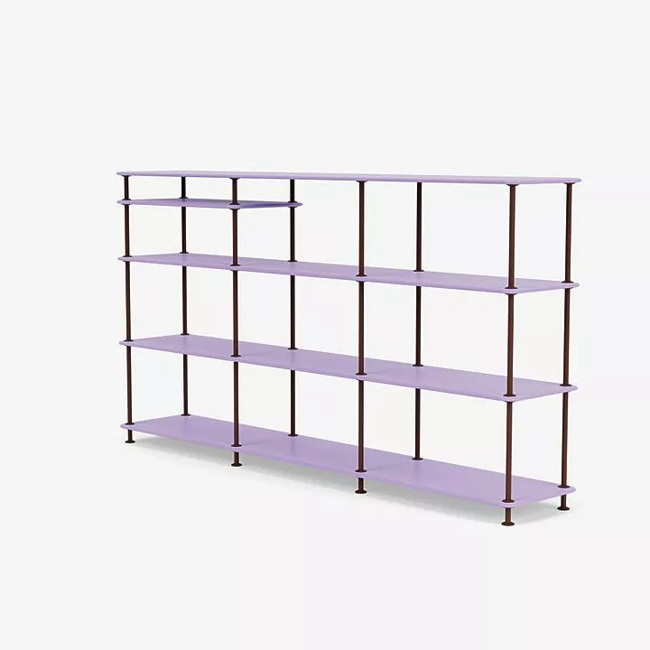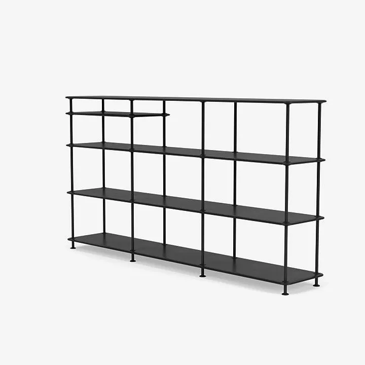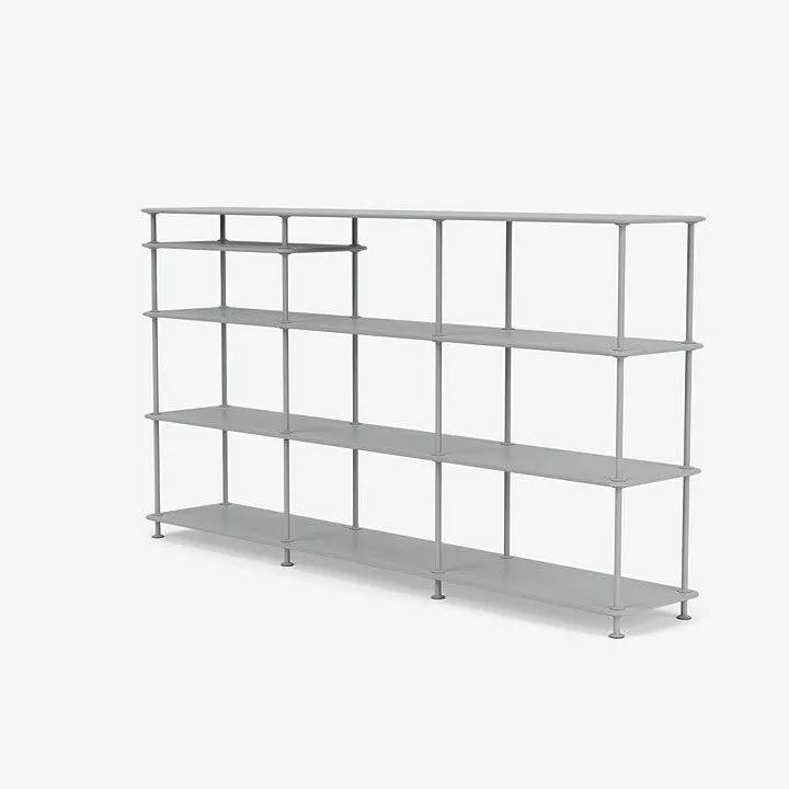 Montana Free 333100 er en bred, frittstående hylle i et slankt og lett design. Bokhyllen er perfekt for kjøkken, gang eller hjemmekontor. Denne frittstående hyllen er tre rom bred, fire hyller høy og har en ekstra innsatt hylle, som skaper asymmetriske dimensjoner. De lette hyllene er atskilt med tynne rør for et minimalistisk utseende.