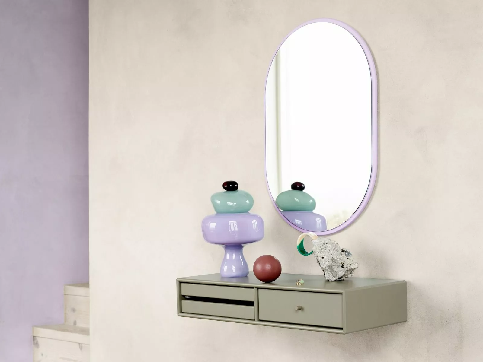 MAKEUP er et lite vegghengt sminkebord. Bordet kommer med en stor skuff og to små skuffer. Kombiner bordet med det ovale LOOK-speilet i matchende eller komplementærfarge.