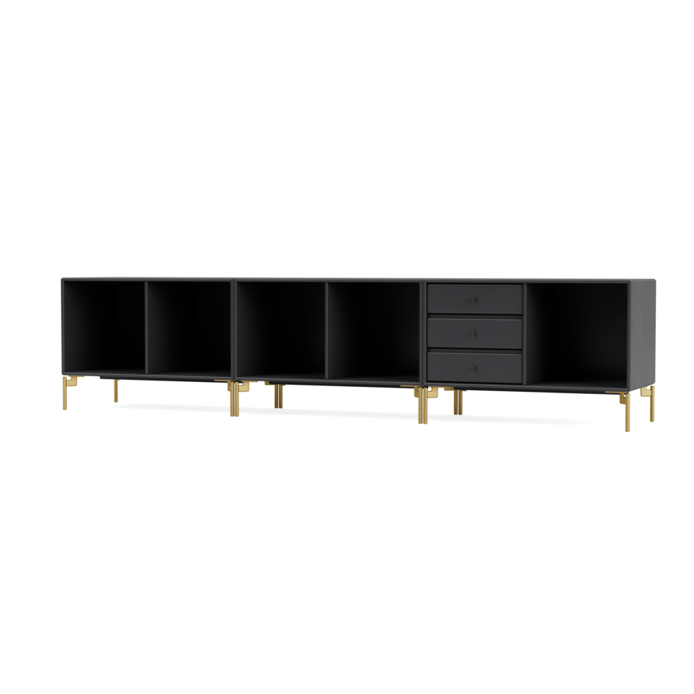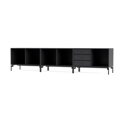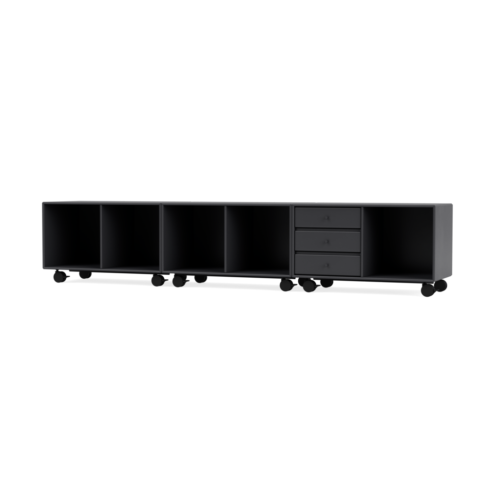 Benken består av fem åpne hyller og tre skuffer. Bortsett fra å velge en sokkel under benken, er også opphengsskinner, ben eller hjul tilgjengelige og vil umiddelbart endre utseendet og funksjonen.