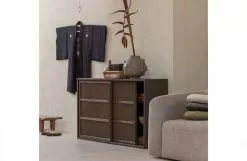 Den lave skjenken er pen og anvendelig med ben, men sokkel- eller opphengsskinner er også tilgjengelige og vil omdefinere skjenkens funksjon.