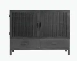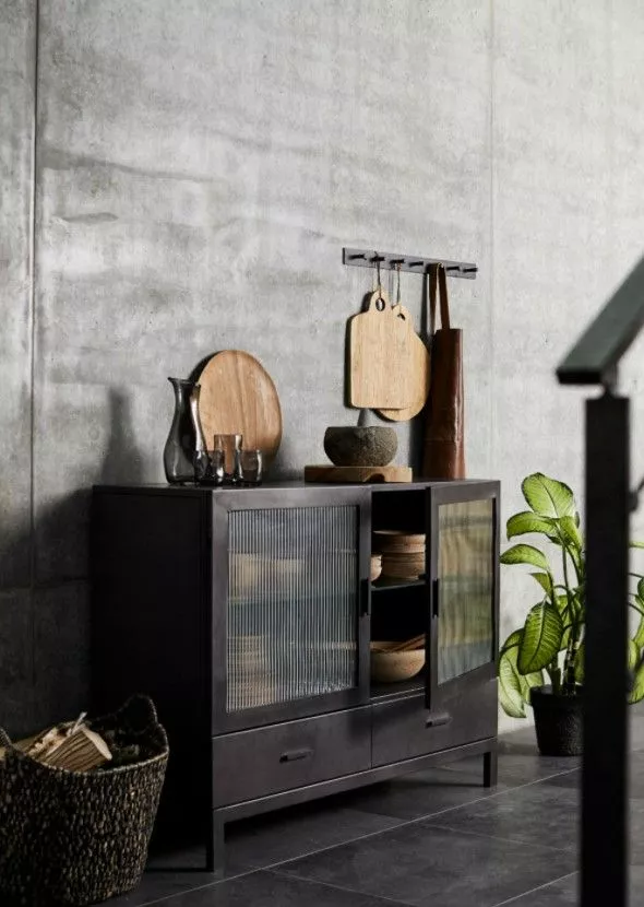 Det råa glasskåpet är ett idealiskt möbel om du vill ha en rå och urban look i ditt hem. Med Dallas-skåpet kommer du att kunna lagra föremål på ett raffinerat sätt på grund av det glasade glaset i ytterdörrarna. Detta ger en fantastisk effekt och ger dig möjlighet att hålla ett lugnt uttryck i interiören.