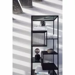 Hylla i svart järn och rökt glas från MUUBS. Den svarta hyllan med rökt glas har en minimalistisk design med fina detaljer. Förvara dina böcker, tidskrifter och dekorationer på dem. Kombinera den med de andra hyllorna och hyllorna från Denver-serien.