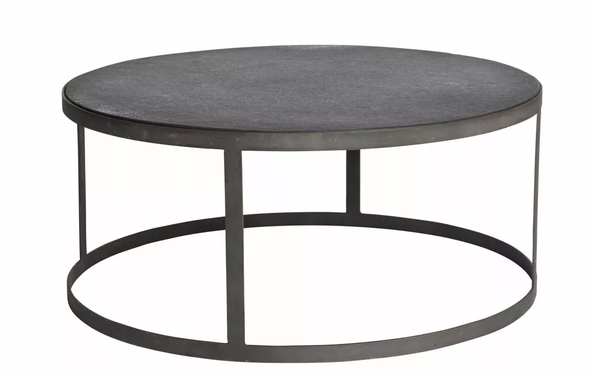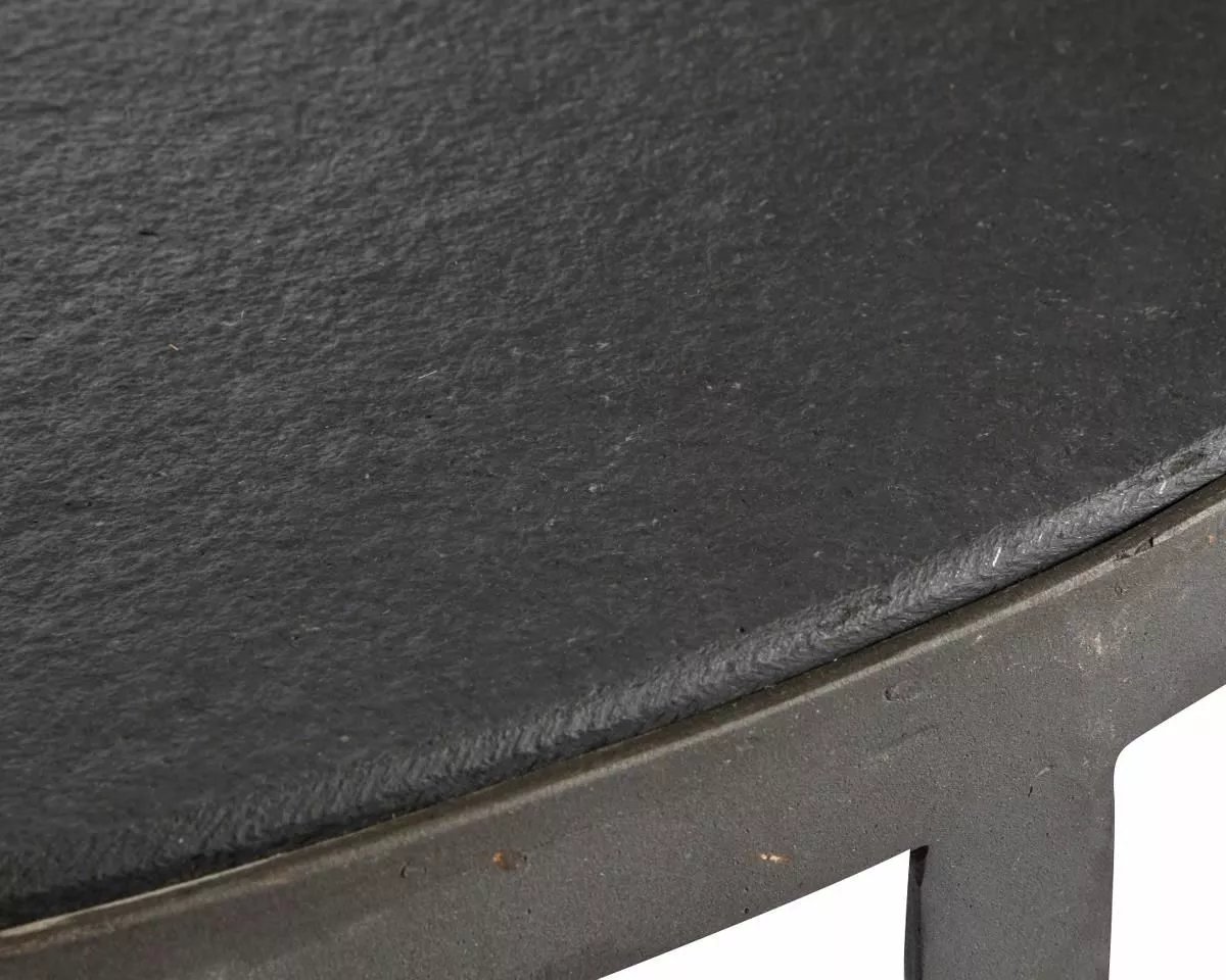 Lågt soffbord i massivt järn med stenbordplatta. Det svarta soffbordet har en funktionell storlek och höjd vilket gör det lämpligt för soffgruppen eller som ett sidobord. Den massiva järnramen och den svarta bordsskivan i sten ger bordet ett maskulint utseende som ger ett modernt hem en rå kant.