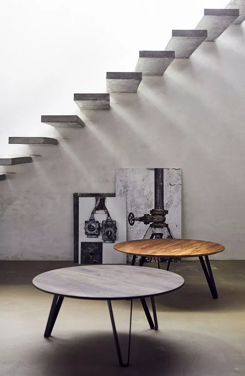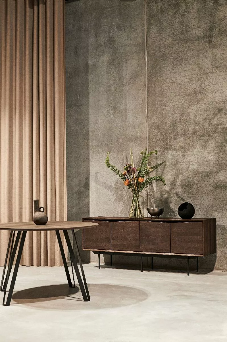 Det runde salongbordet Space i røkt eik er en vakker kontrast i de lyse skandinaviske hjemmene.