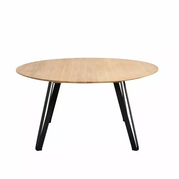 Runt matbord från MUUBS i lättoljad ek. Ekbordet är designat i samarbete med det danska designteamet Says Who, som också har designat resten av rymdserien. Det finns många fördelar med runda matbord eftersom det tar mindre plats i ett rum och det kan finnas mer runt det utan att det känns trångt. Matbordet i ek bjuder på en mysig kväll, eftersom alla kan ha ögonkontakt och prata med varandra. Matbordet levereras med en underhållsguide, och guiden finns också under MUUBS berättelser – råd och underhåll.