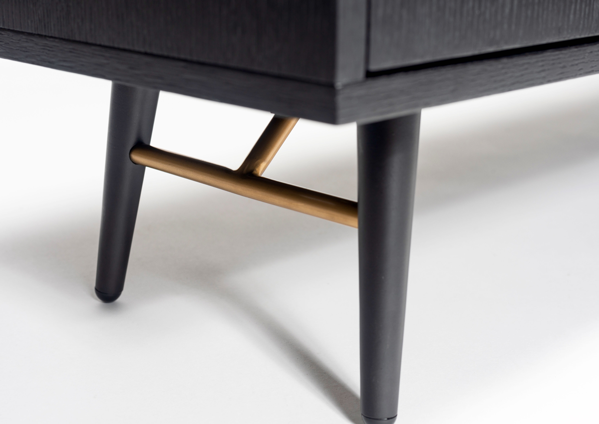 TV-bordet er spesielt vakkert takket være de elegante trelinjene i overflaten, som er eikens vakre åremønster. Åremønsteret er vakkert fremhevet på TV-bordet, da linjene går vertikalt på døren og horisontalt på skuff og topplate. Det gir en vakker kontrast, som har et varmt og elegant uttrykk.