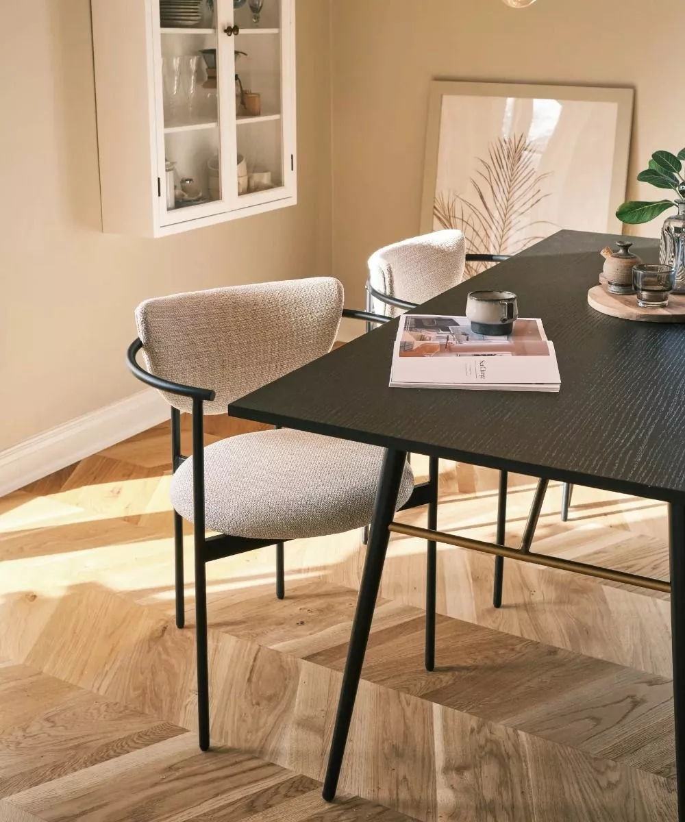 Armlehøyden er også nøye valgt for å ikke være høyere enn stolen kan skyves under de fleste spisebord.