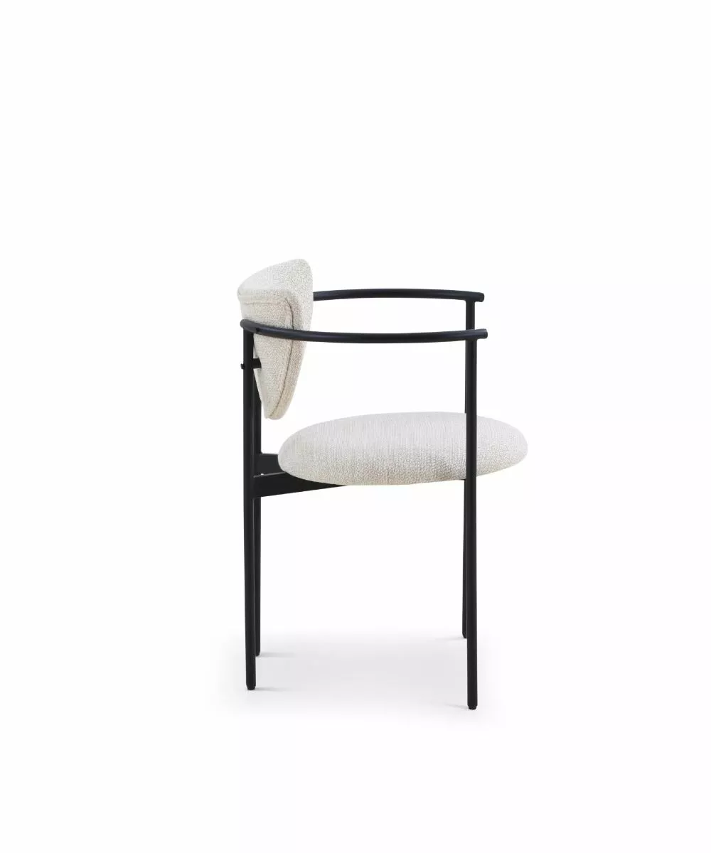 Setet og ryggen er polstret med 3-5 cm PU-skum. Metallstellet er lakkert i en matt sort farge som passer til de fleste spisebord.