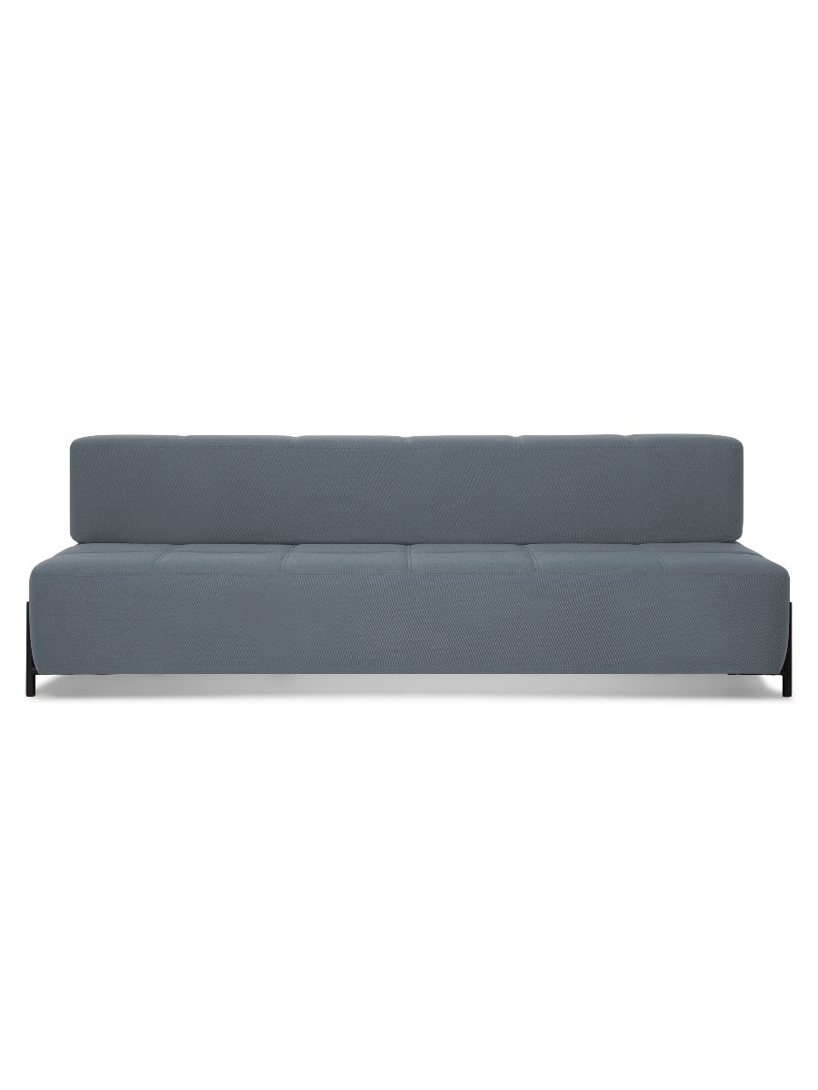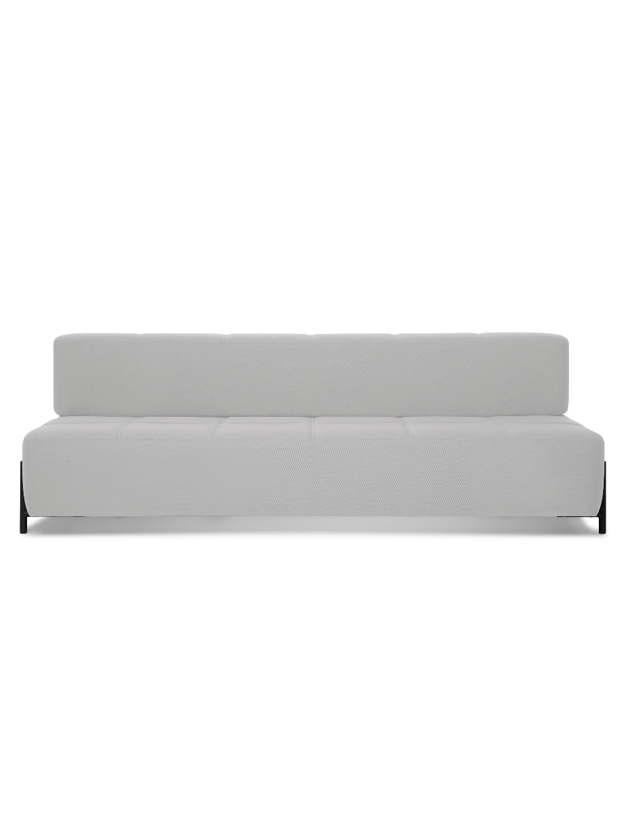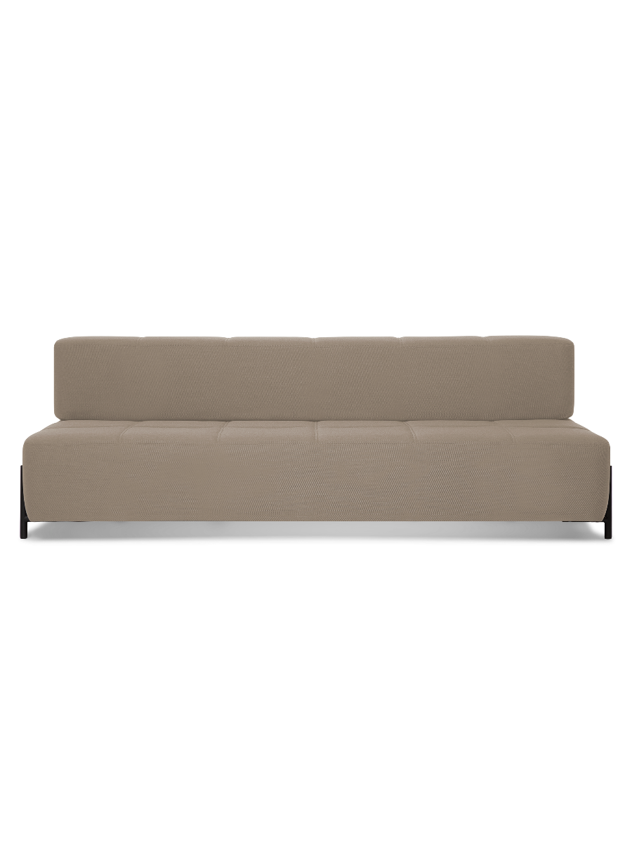 Daybes sits och rygg stöds av en lättmetallram som finns med eller utan armstöd. Armstöd (tillval) är gjorda av ränder av slät svart metall som sträcker sig bakom soffan och bildar ett strömlinjeformat ryggstöd.